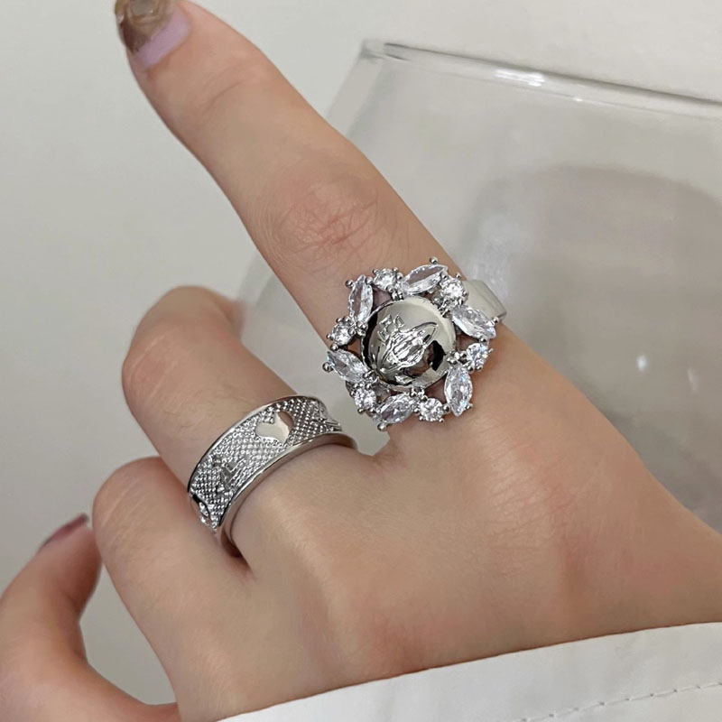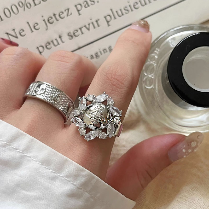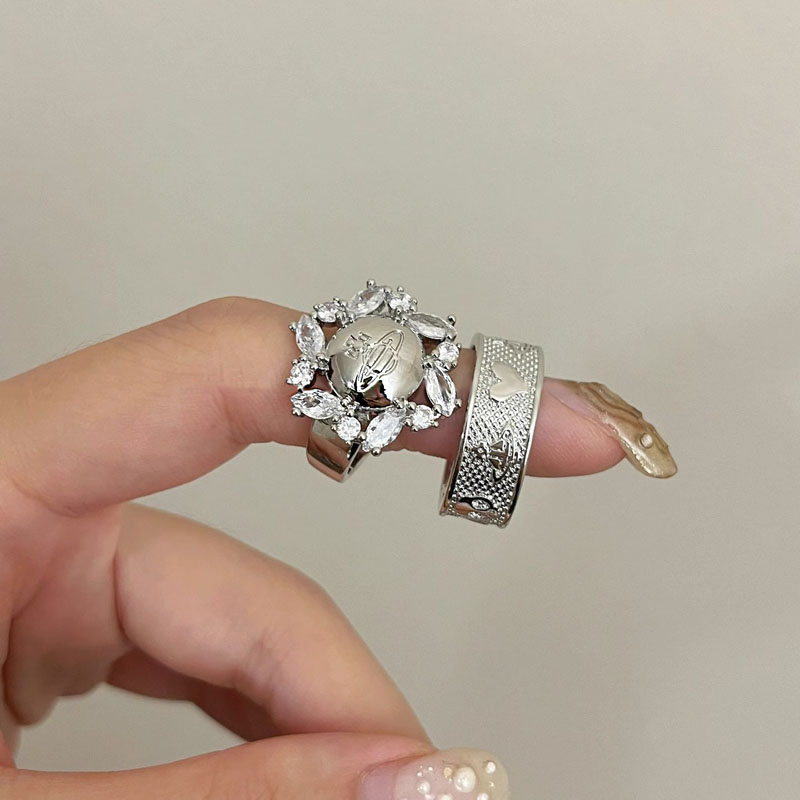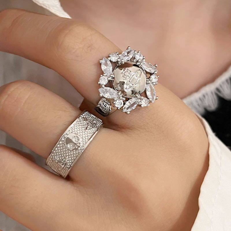 土星满钻锆石镶嵌开口戒指女星球轻奢潮高级感气质精致叠戴食指环