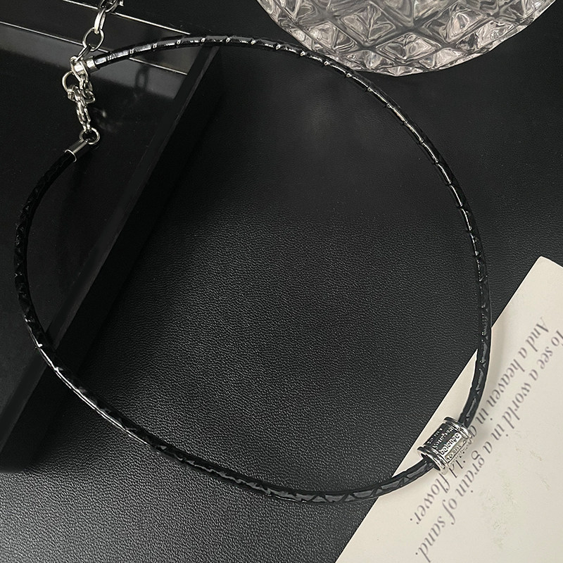 新款小众设计黑色皮绳choker颈链女y2k锁骨链简约百搭项链夏配饰
