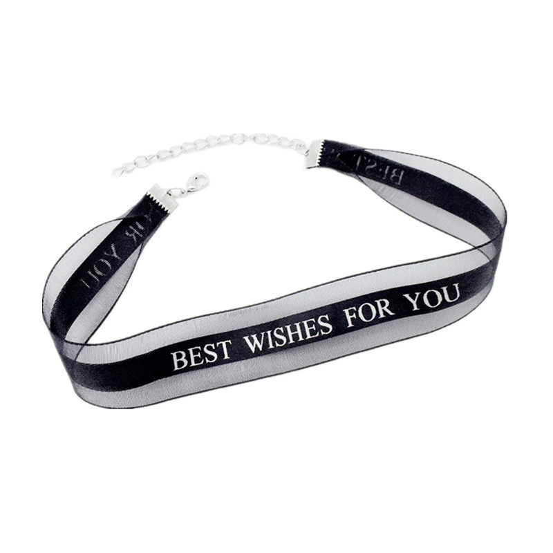 轻运动快时尚颈带性感中性欧根纱英文字母黑色气质原创项圈锁骨女