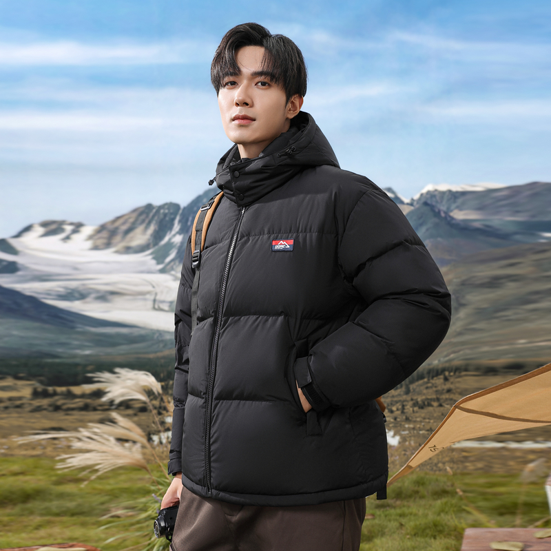 雪中飞2025冬新款男士短款羽绒服连帽面包服休闲时尚简约保暖舒适