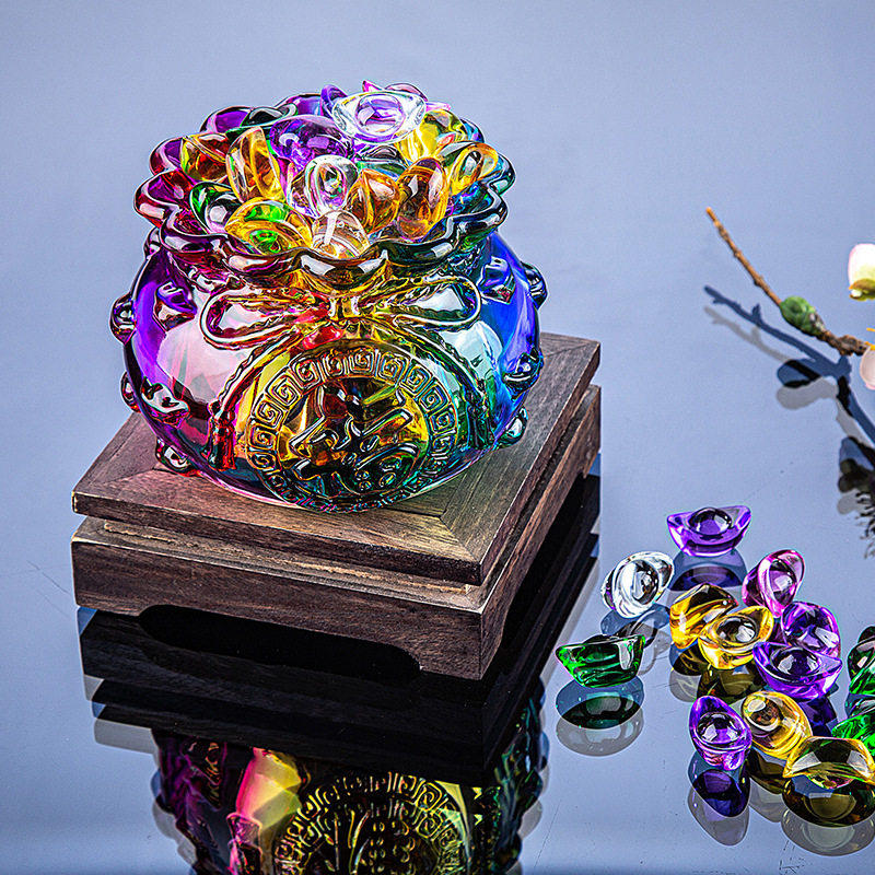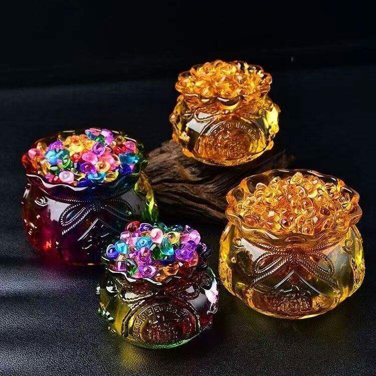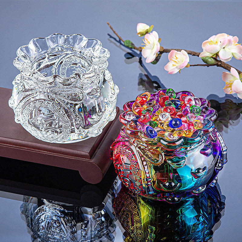 白水晶黄水晶聚宝盆摆件琉璃元宝金黄色家居桌面正财开财库开业