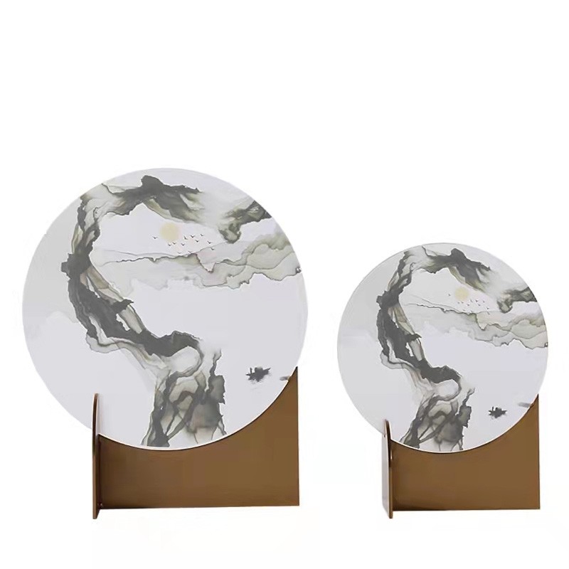 现代新中式风g景摆件铁艺酒店餐厅书房样板间玄关装饰品工艺摆设