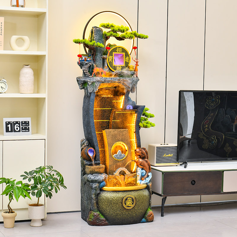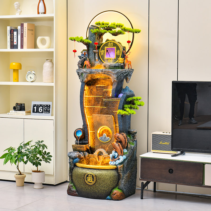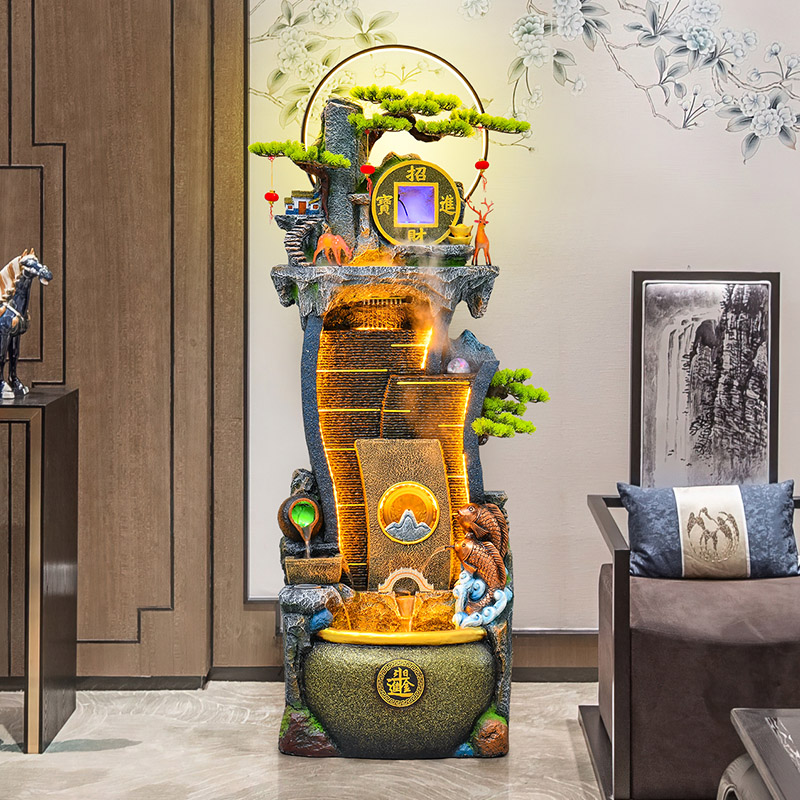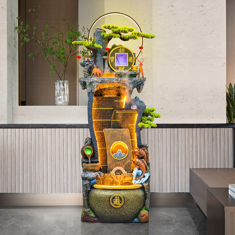 新中式招财进宝风水轮高山流水摆件循环水办公室客厅景观装饰礼物