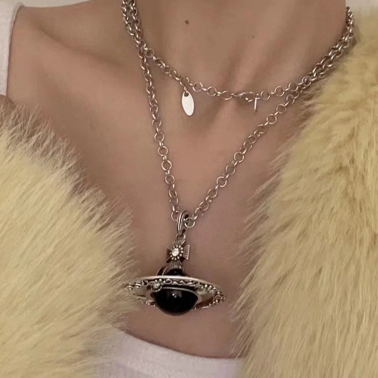 Willa|立体大号复古雕花枪黑紫色红色ORB大号土星项链毛衣链百搭