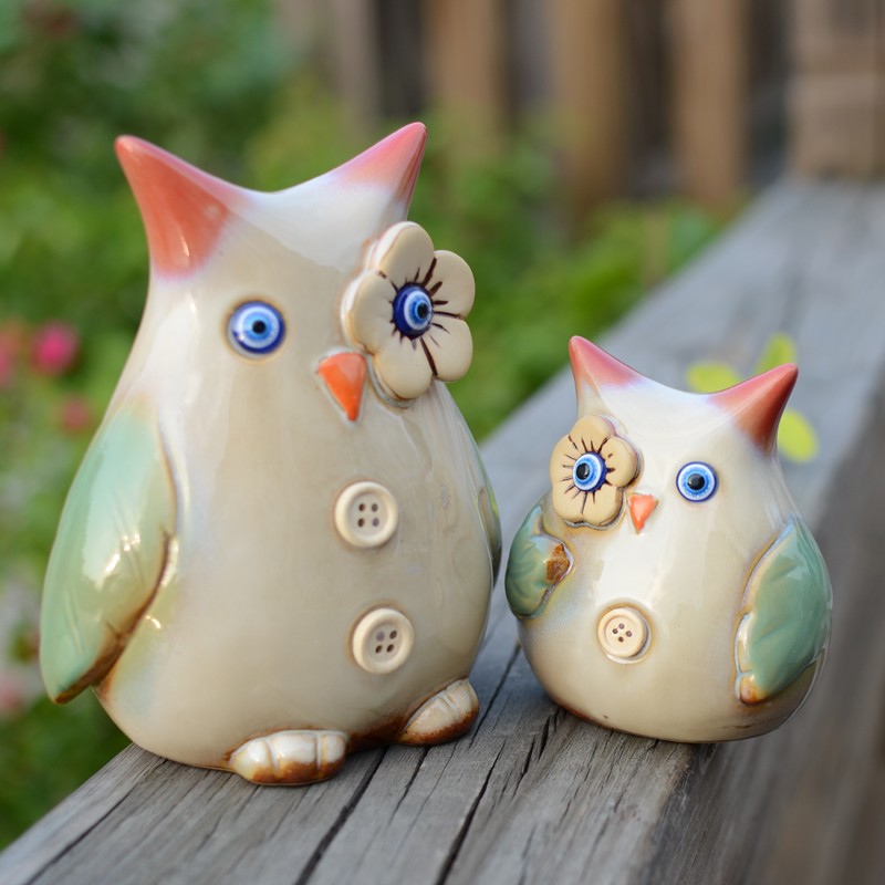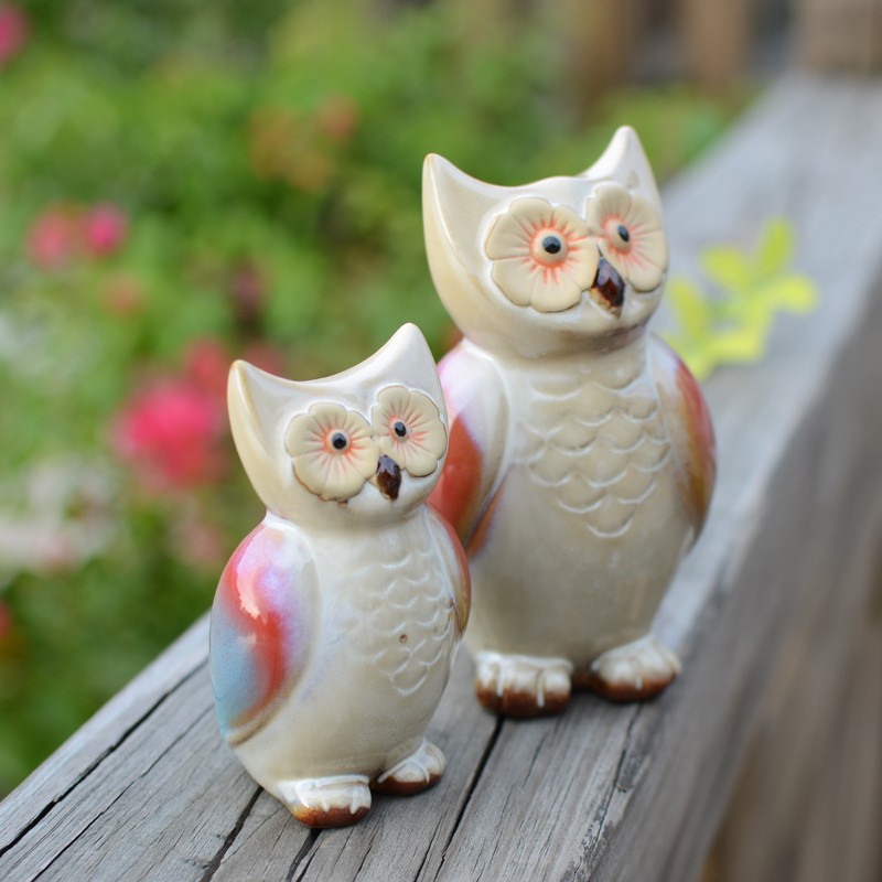 吉祥镇宅陶瓷礼品工艺品花园阳台装饰摆件窑变釉猫头鹰多款 包邮