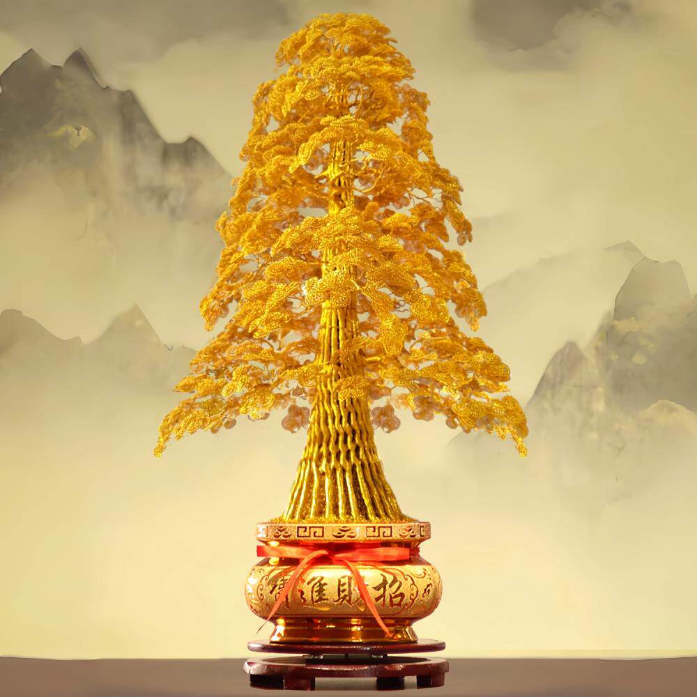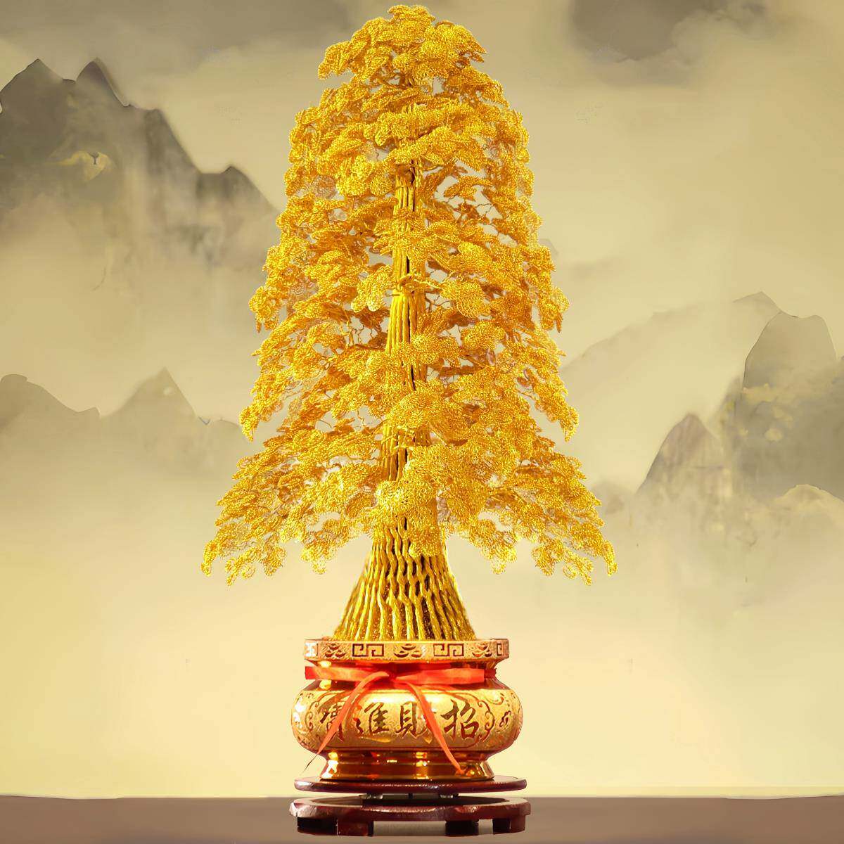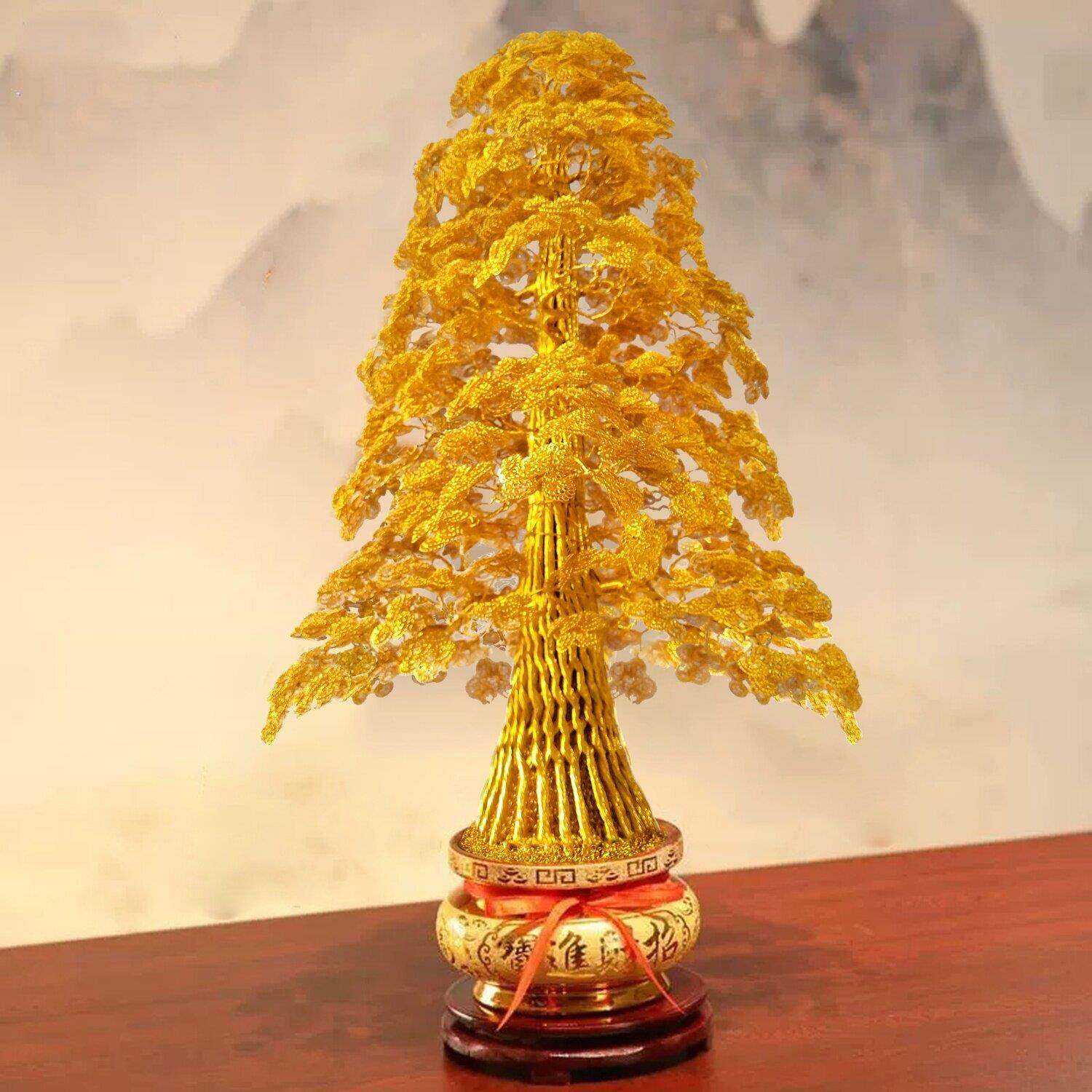 高端金黄色发财树手工编织 铜丝铝线 线摇钱树 招财树开 业乔迁礼
