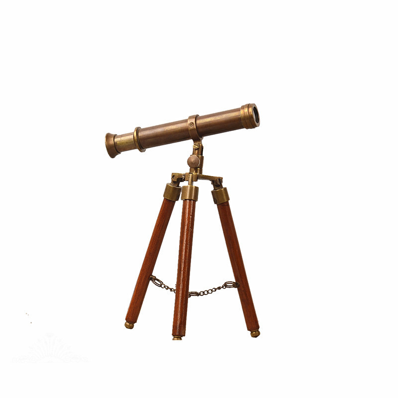 黄铜望远镜复古书房办公室桌面小号摆件三脚架单筒印度进口欧美式