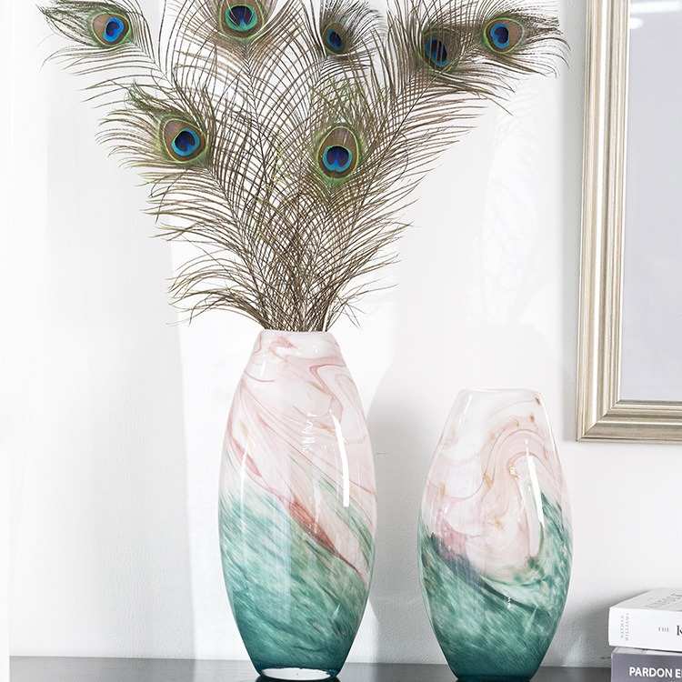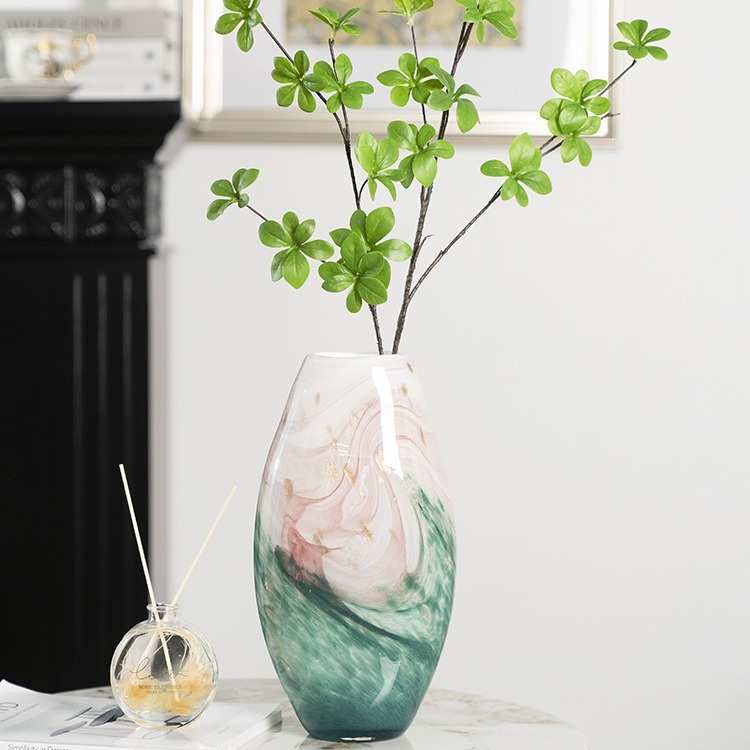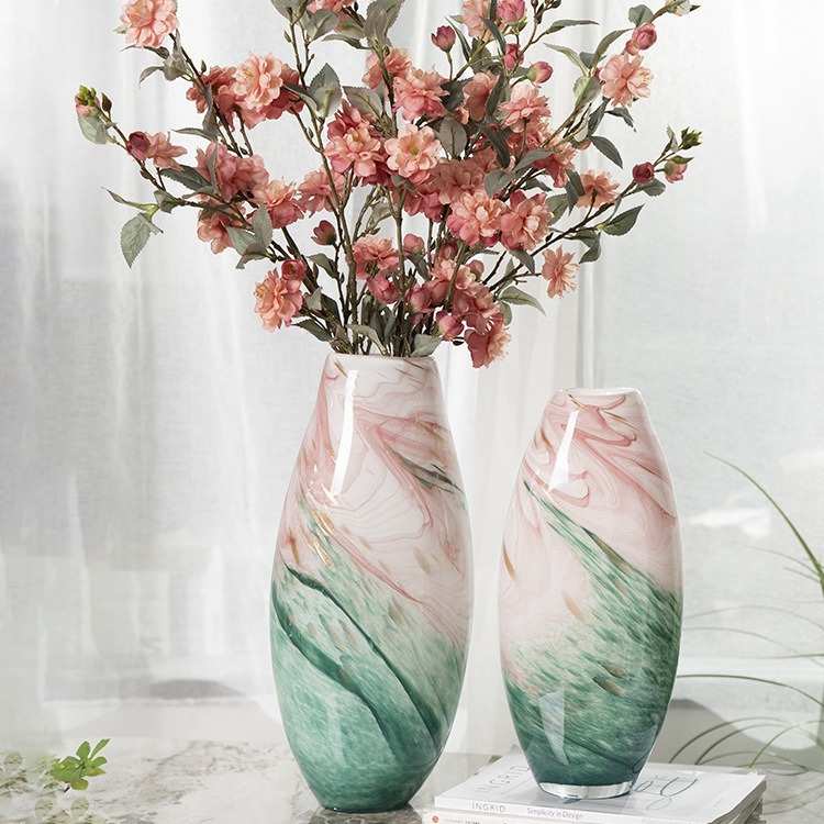 新中式轻奢粉色渐变琉璃花瓶高级感玻璃摆件客厅插花玄关装饰品