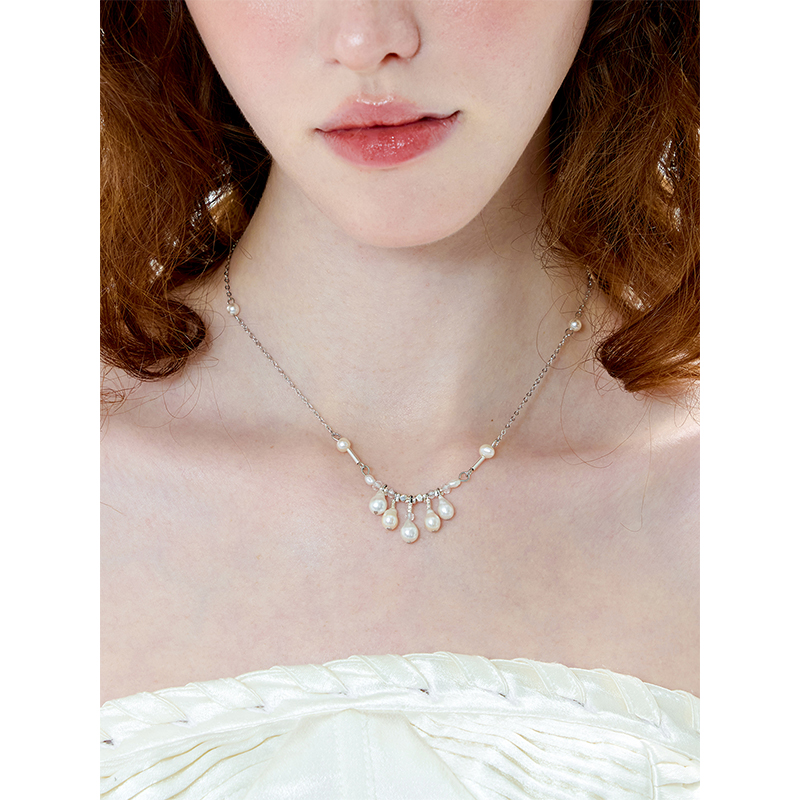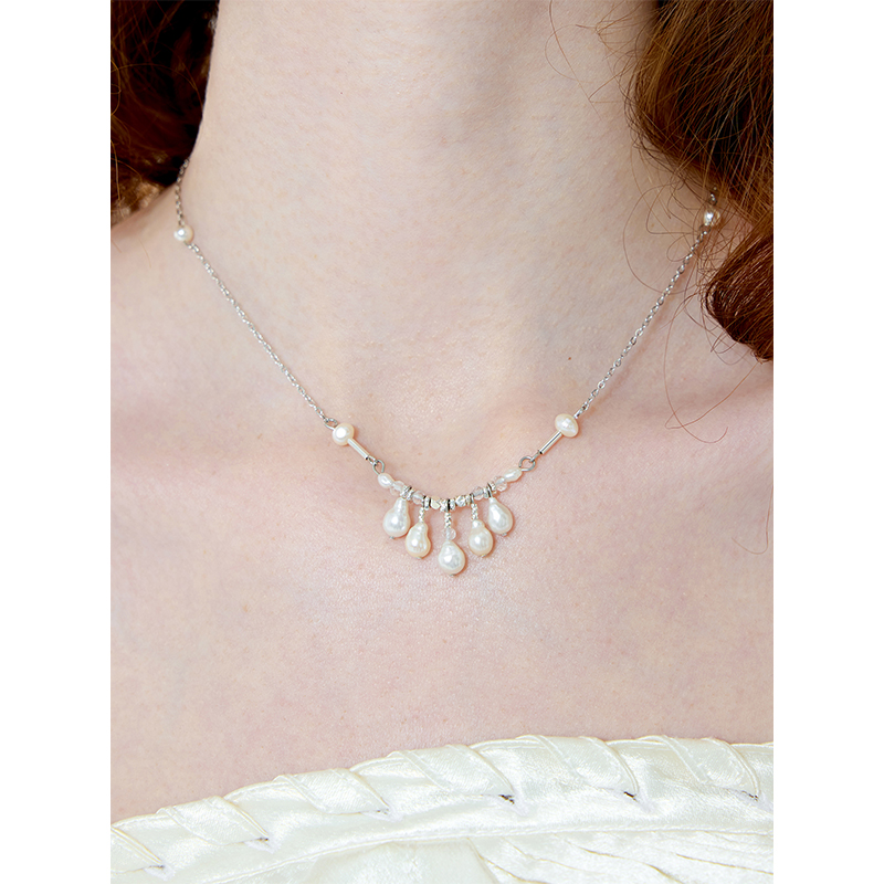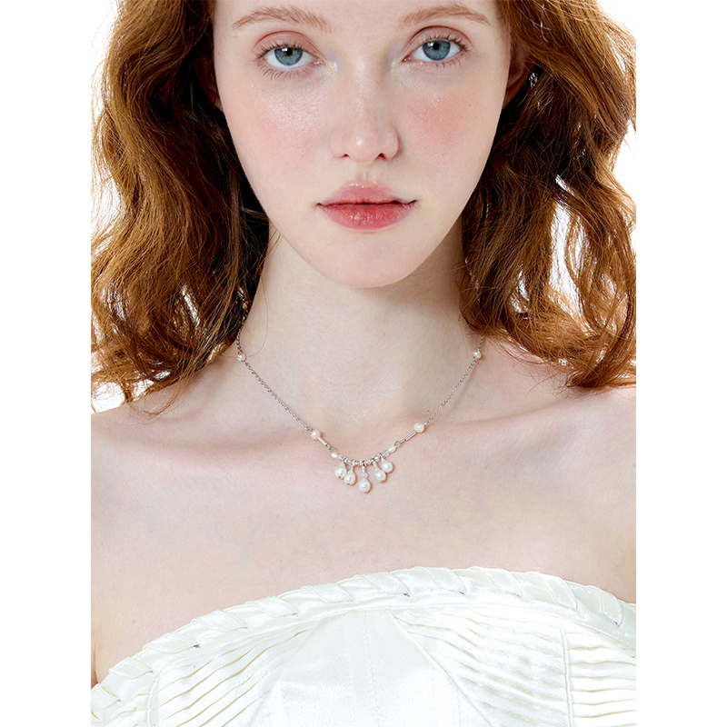 浮U生物 银河泡沫原创水滴珍珠碎银子项链气质简约设计感锁骨链