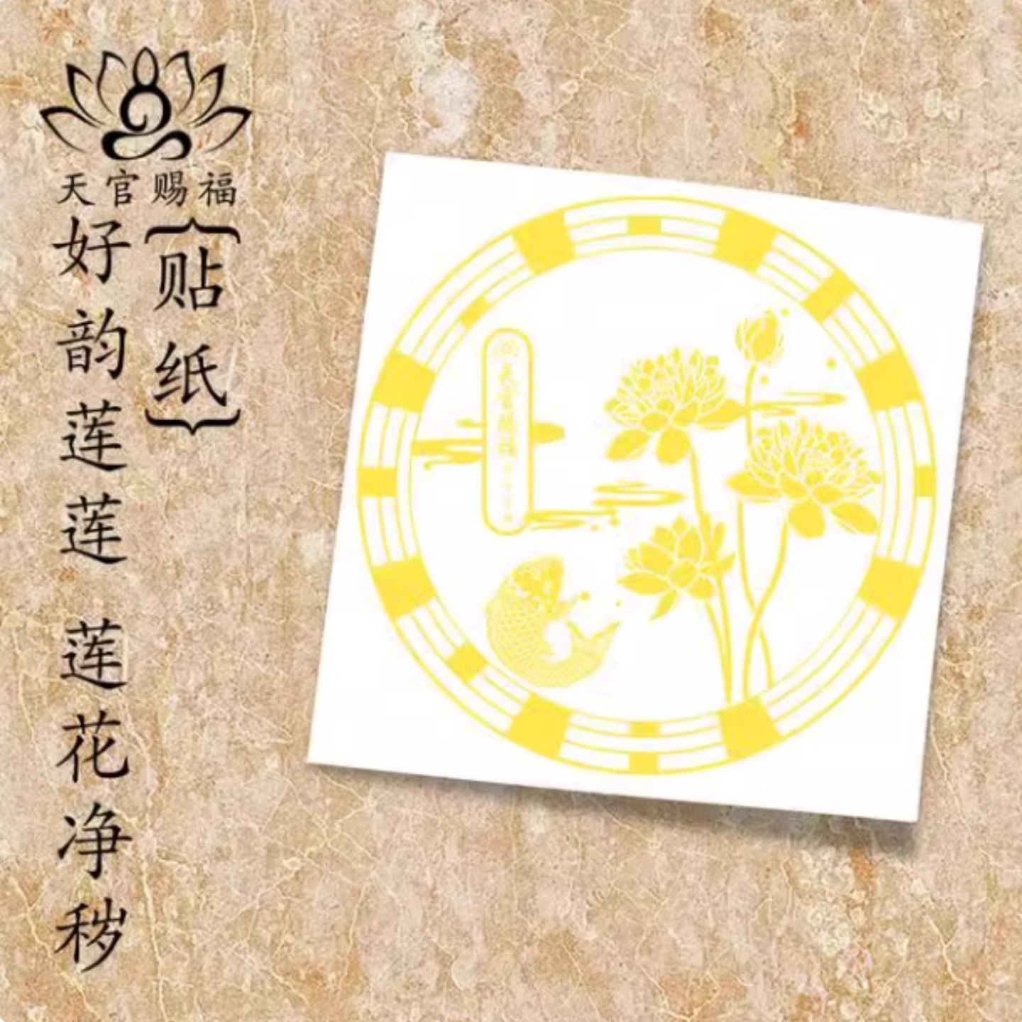 荷花鲤鱼净秽图卫生间厕所莲花贴纸好运连连对门荷花锦鲤金属贴画