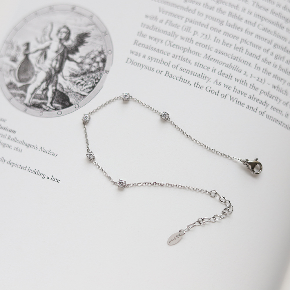 SL086 满天星五颗白钻简约手链女款 钛钢银色不掉色不锈钢首饰