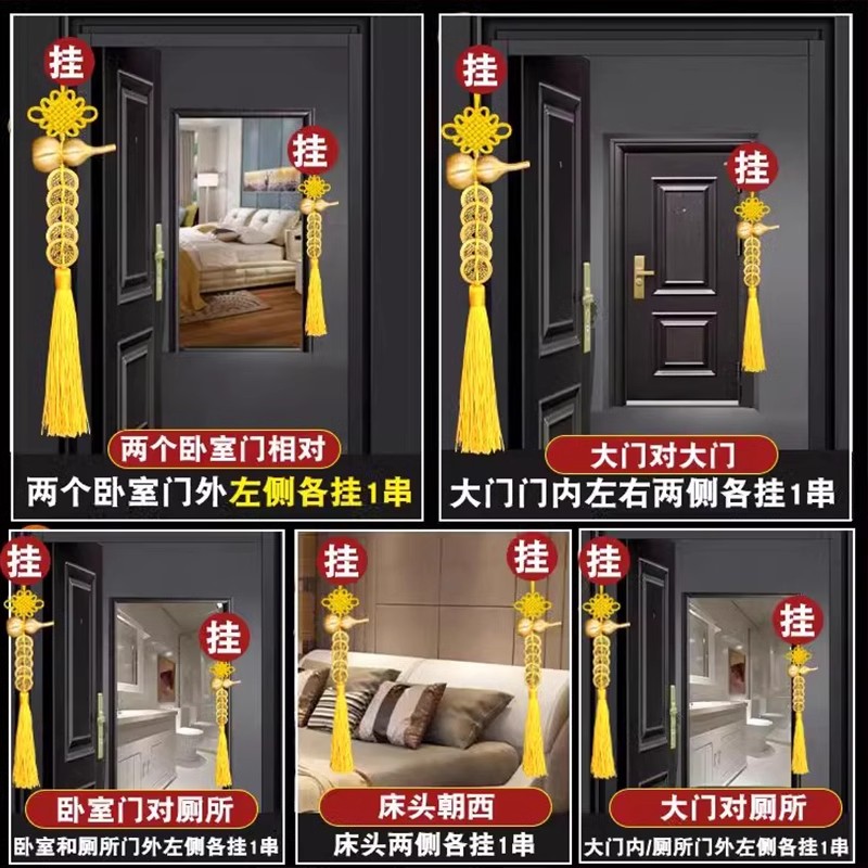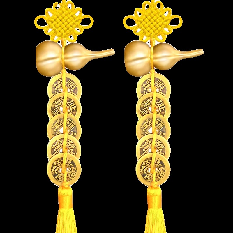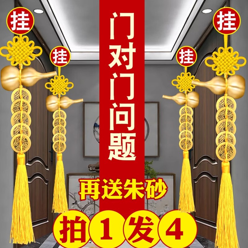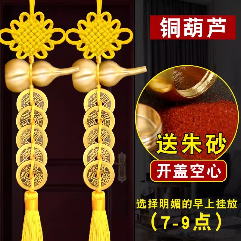 五帝钱入户门对门纯铜葫芦挂件朱砂开口黄色真品铜钱吉祥古币挂件