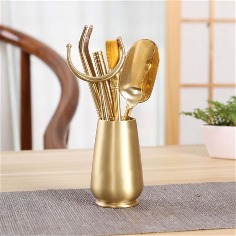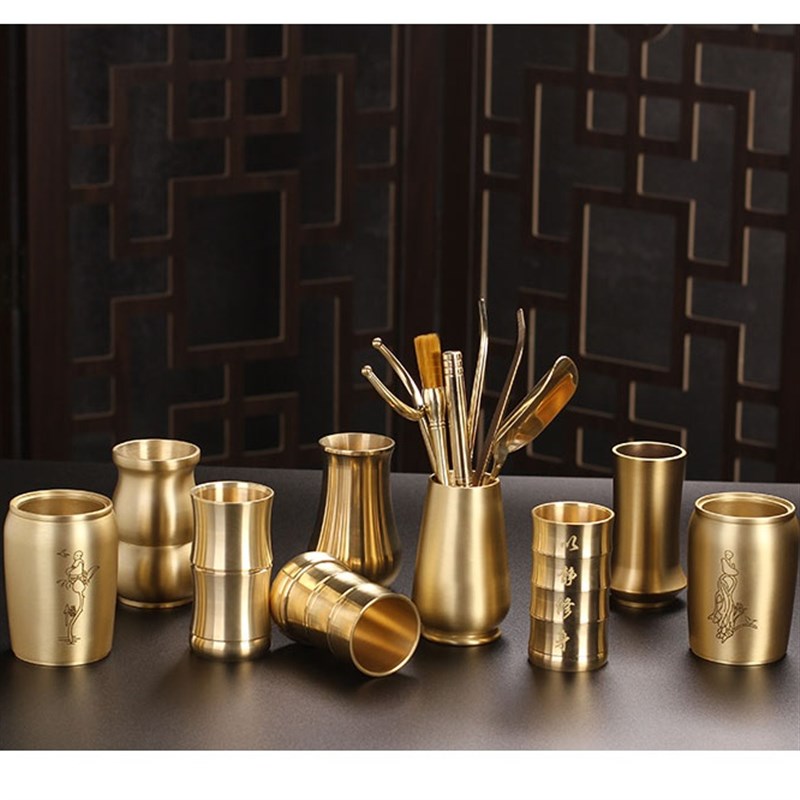 速发黄铜家用茶桌收纳装饰摆件办公室桌面轻奢风高级感创意复古铜