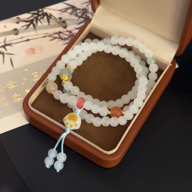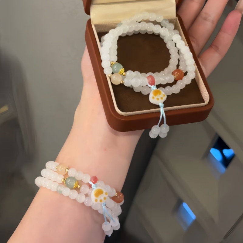 可爱炭烧猫爪三圈手串新中式国潮轻奢小众设计高级感编织闺蜜手链