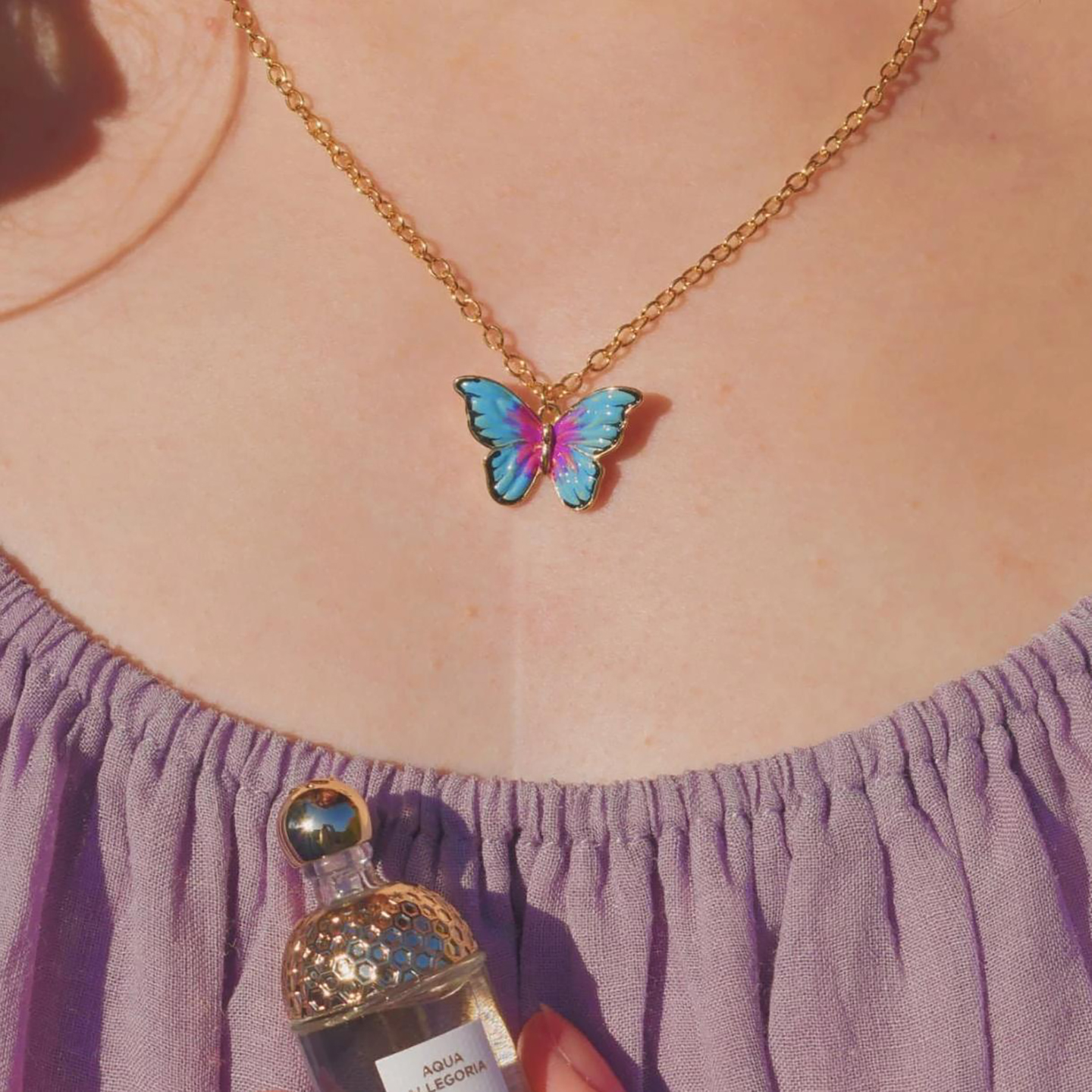 SELENICHAST蓝紫色蝴蝶项链轻奢小众设计珐琅女友生日礼物首饰