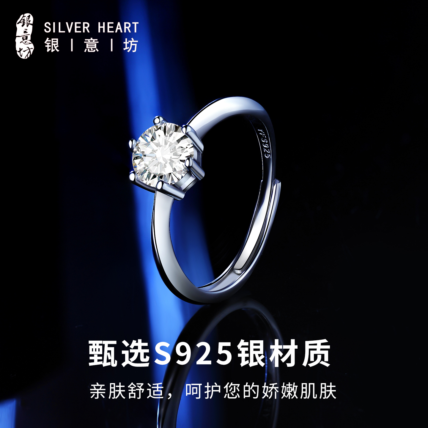 巨好看的莫桑石戒指小众精致设计感女士S925银指环订婚求婚银戒指