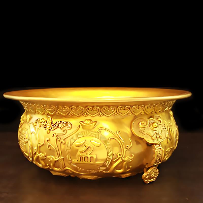 新疆包邮铜聚宝盆摆件铜缸香炉居家用客厅柜台存钱罐特大号店铺开