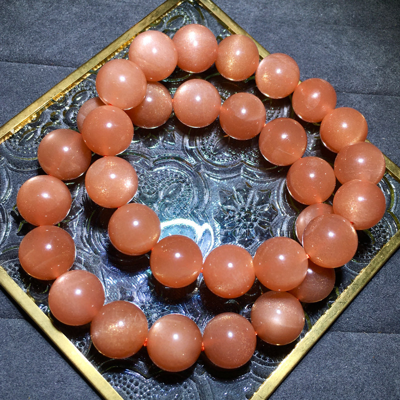 天然金砂太阳石单圈手链双色深橙色日光石手串水晶饰品女生情侣款