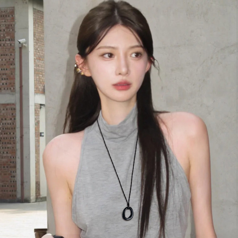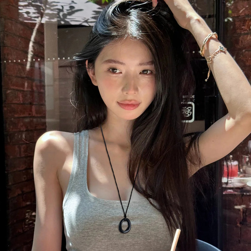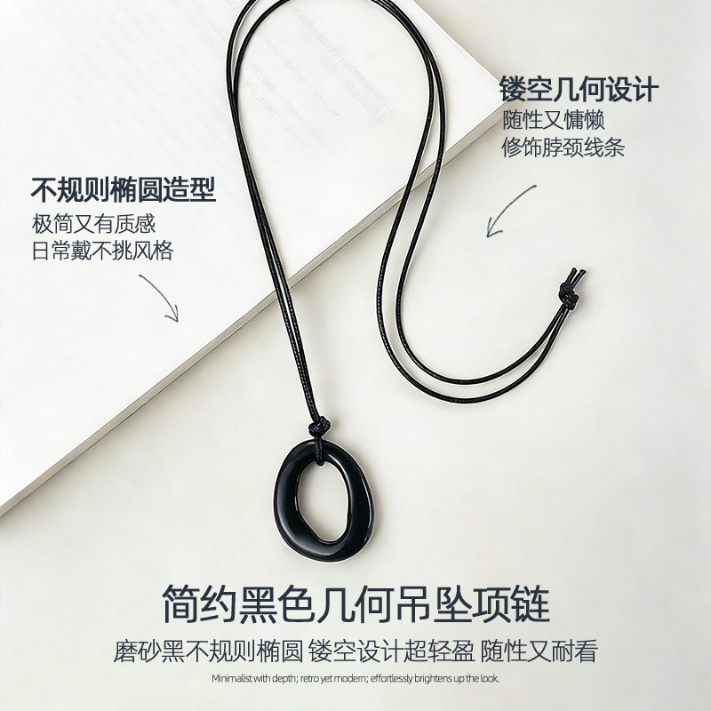 黑色磨砂不规则几何吊坠项链女士高级感轻奢配饰小众精致长款颈链