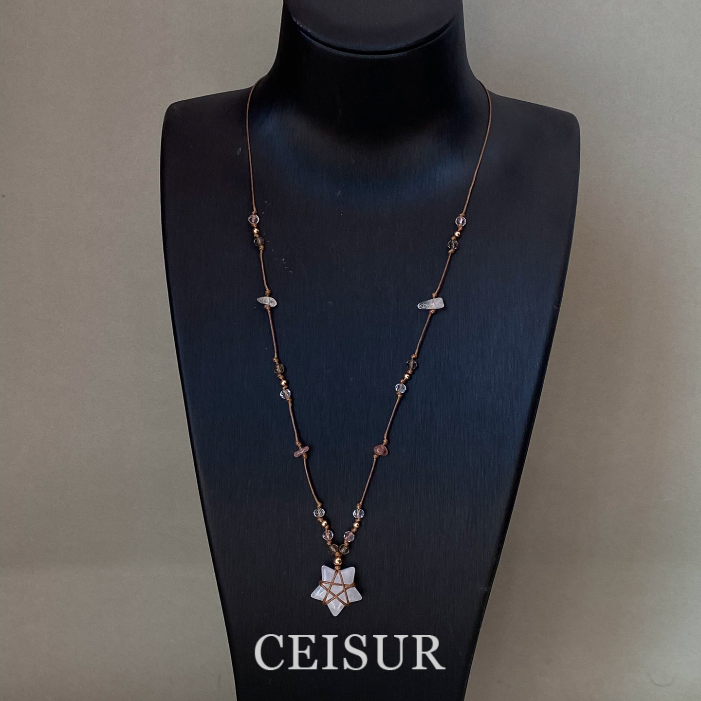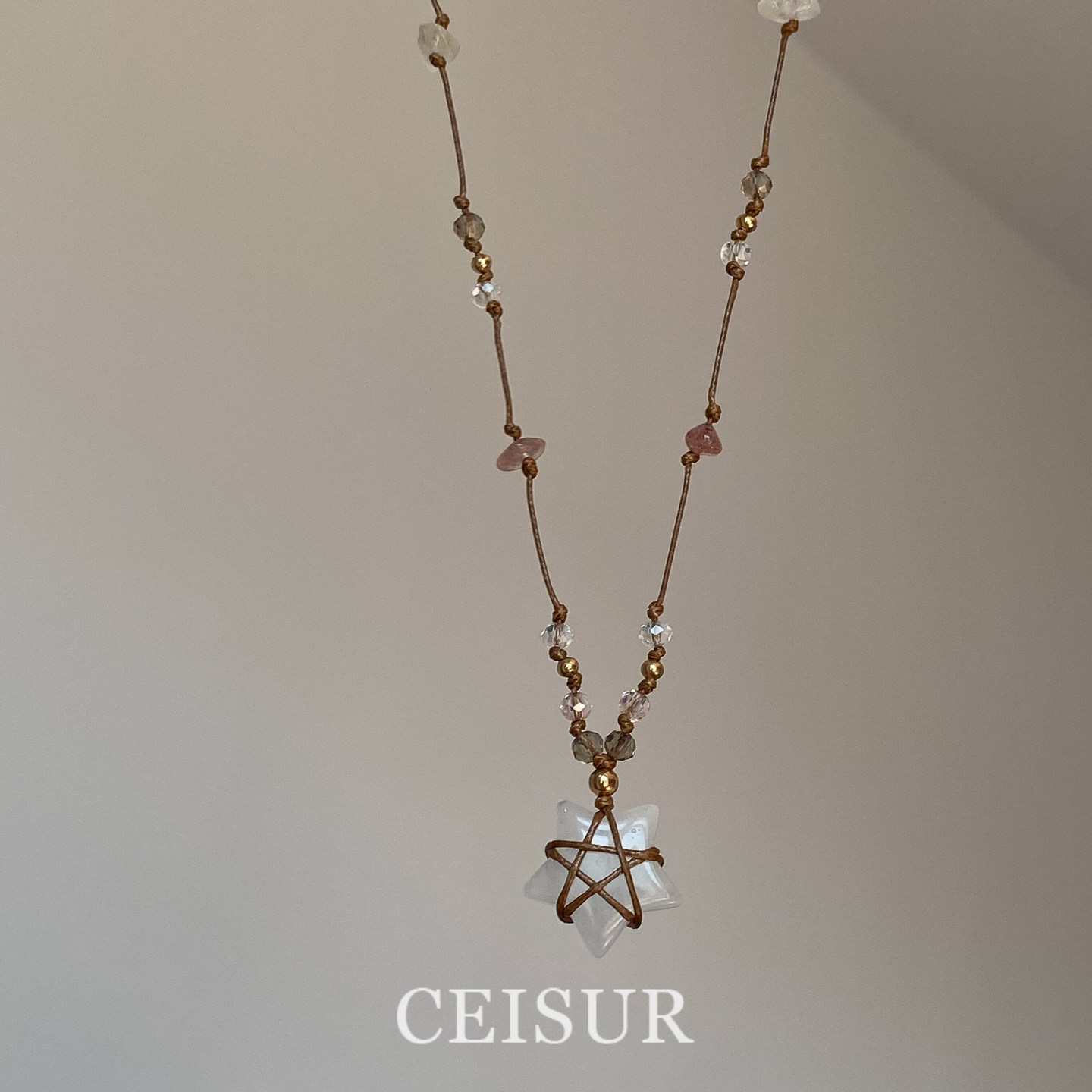 复古白色星星吊坠编绳项链女款简约时尚设计毛衣链精致绝美锁骨链