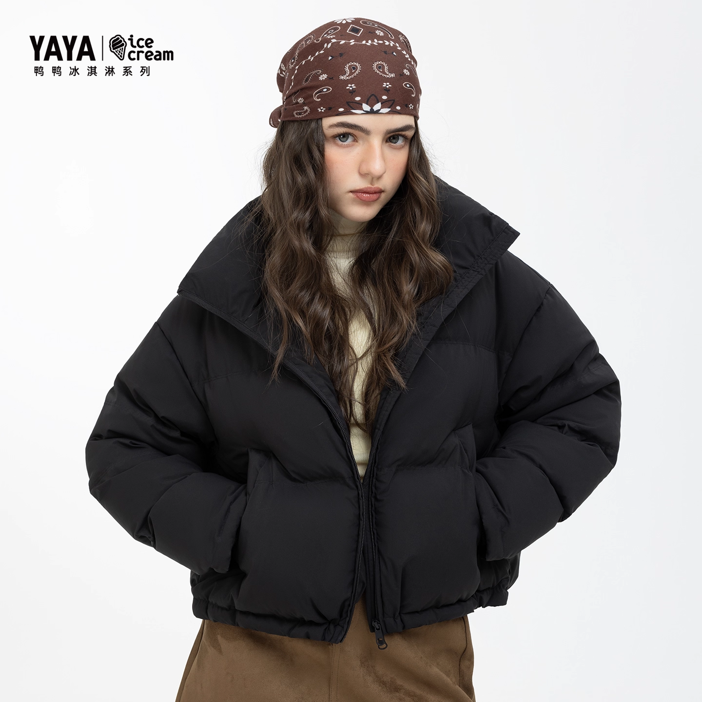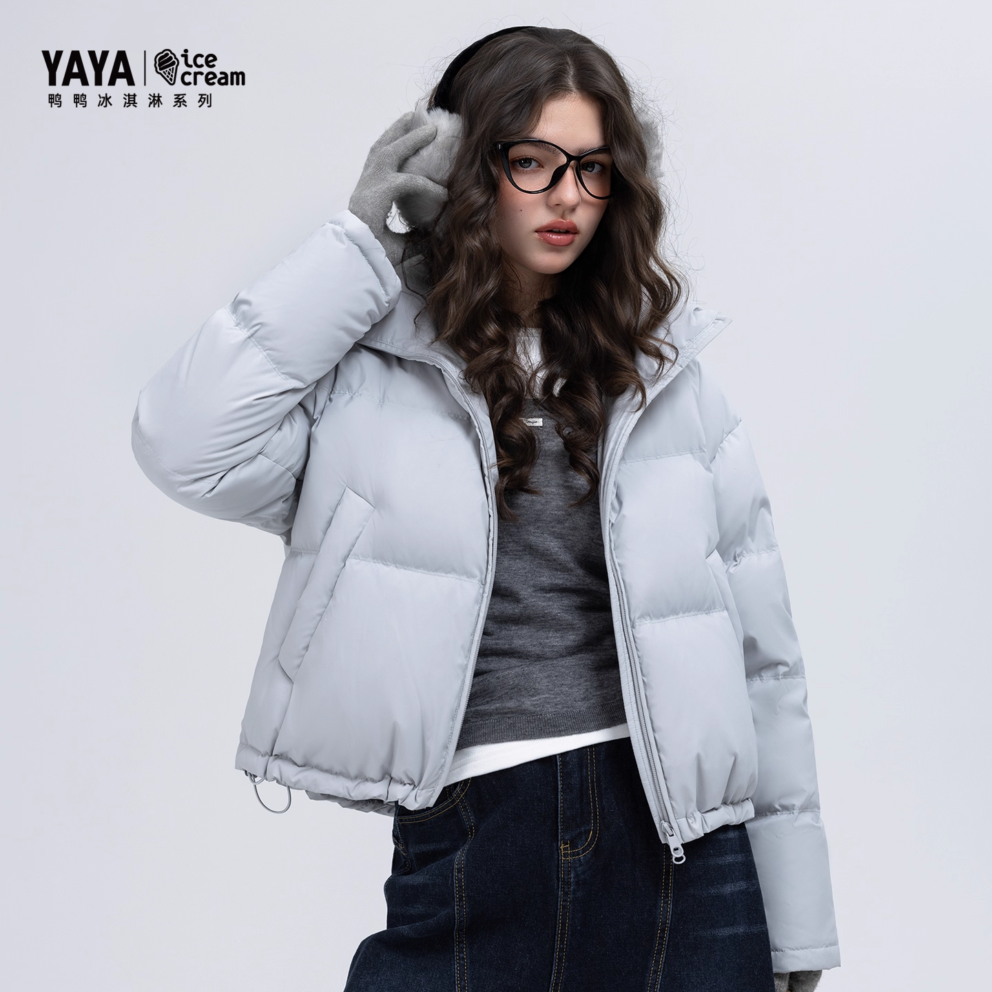 【冰淇淋系列】鸭鸭2025年冬新款百搭短款女士纯色立领羽绒服外套