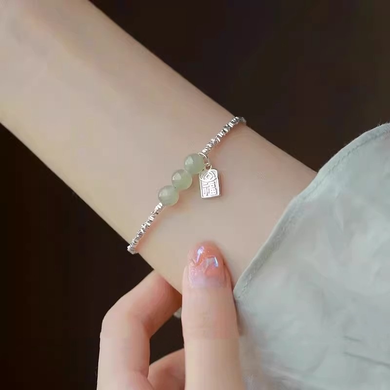 【温柔雅贵】新中式和田玉福牌碎银手链女爆款轻奢小众高级感玉石
