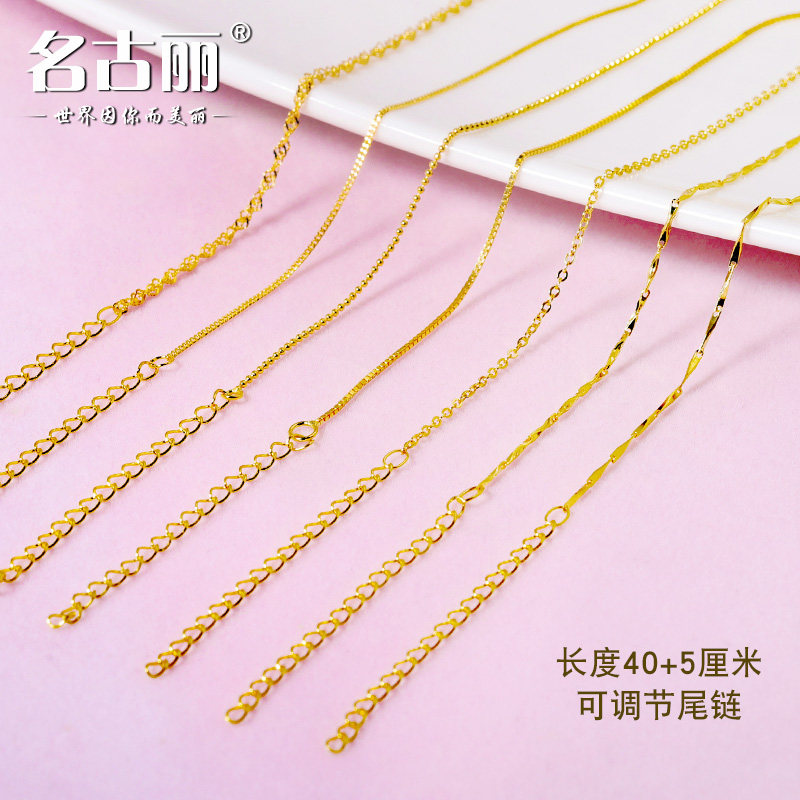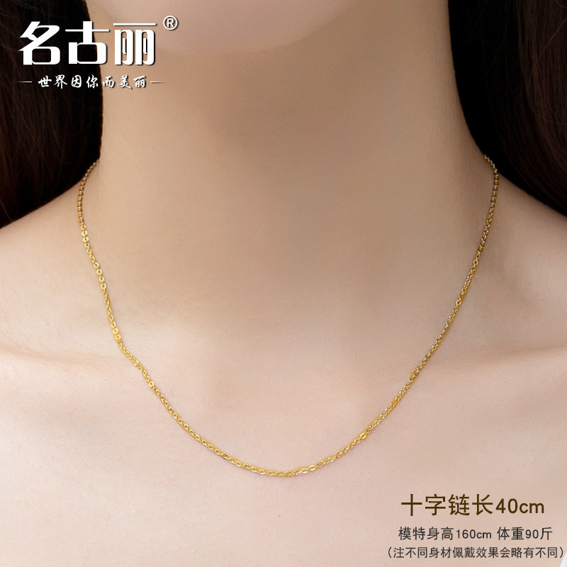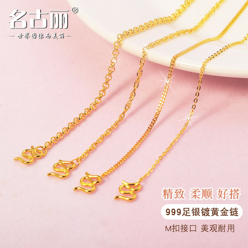 925银项链女镀24k黄金短款锁骨链配链999纯银链子十字瓜子元宝链
