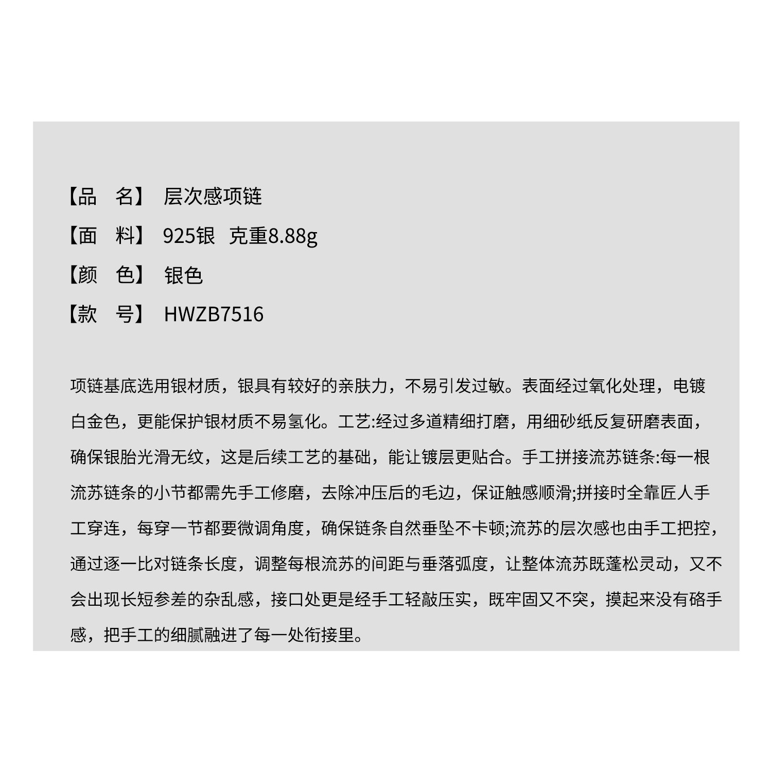 THESOONG/流苏小刷子925银手工磨砂亲肤抗氧化百搭层次感项链7516
