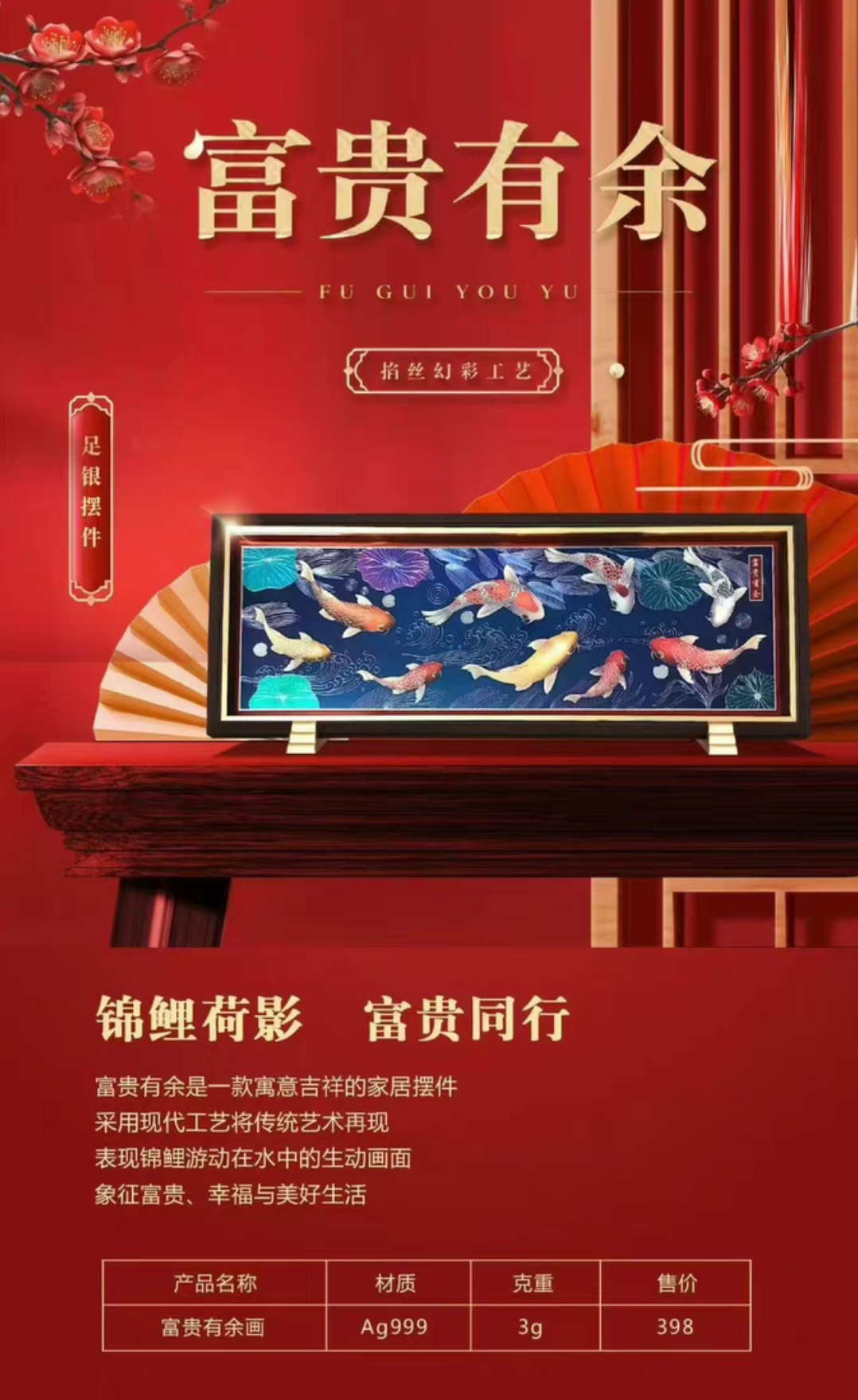 富贵有余 银版画足银3克家居礼品客厅书房