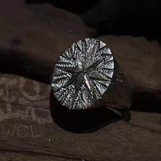 织纹雕金芒星印章戒指小众原创意大利工艺