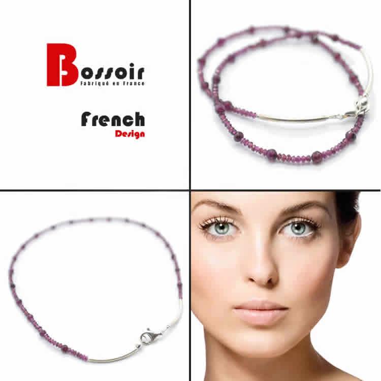 Bossoir手工制造半宝石女士项链40cm天然石榴石长银扣7170089