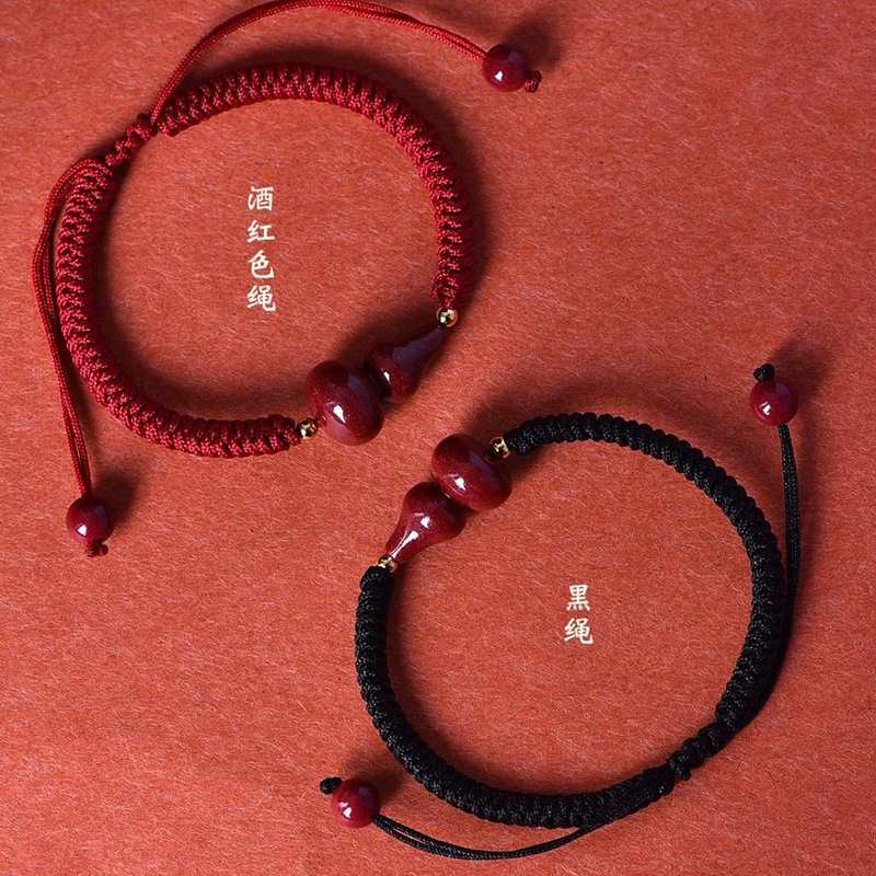 紫金砂葫芦手绳酒红色手绳本命年大红色手绳男女款黑色低含量手绳