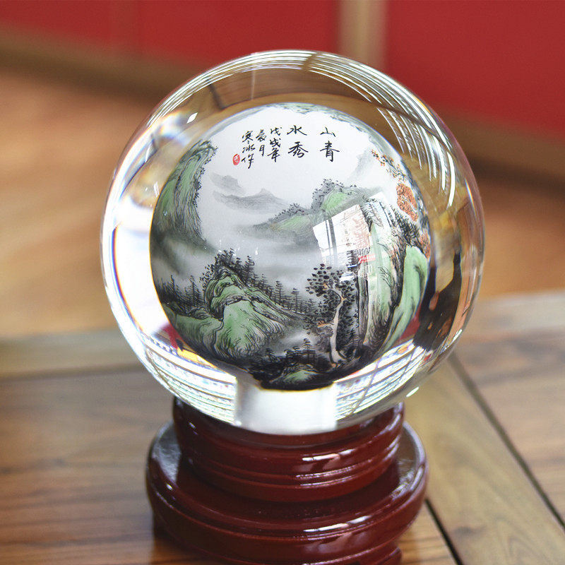 新款内画琉璃水晶球办公桌摆件家庭装饰品手绘商务礼品送客户领导