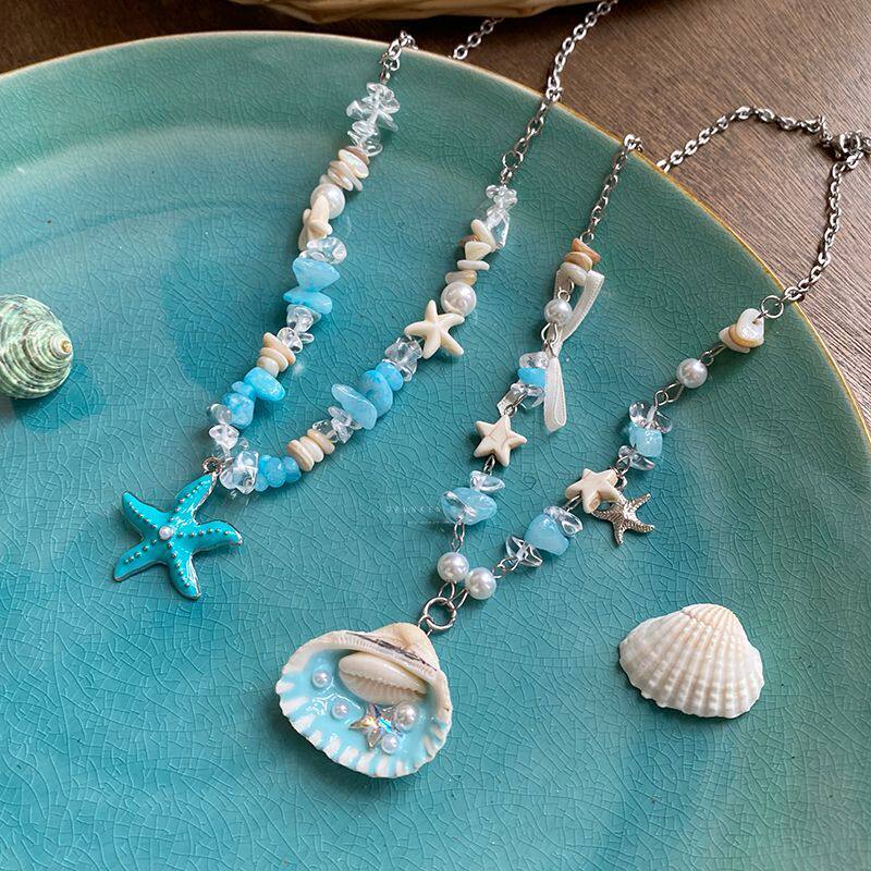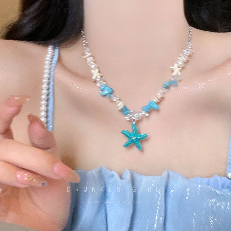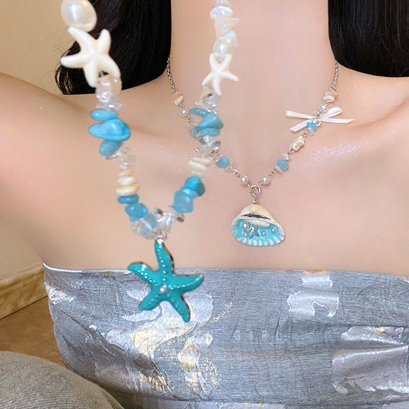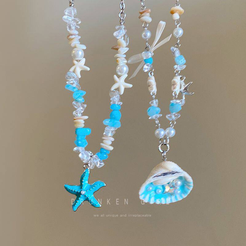 蓝色海星贝壳串珠项链女夏天海边度假风配饰小清新甜美百搭锁骨链