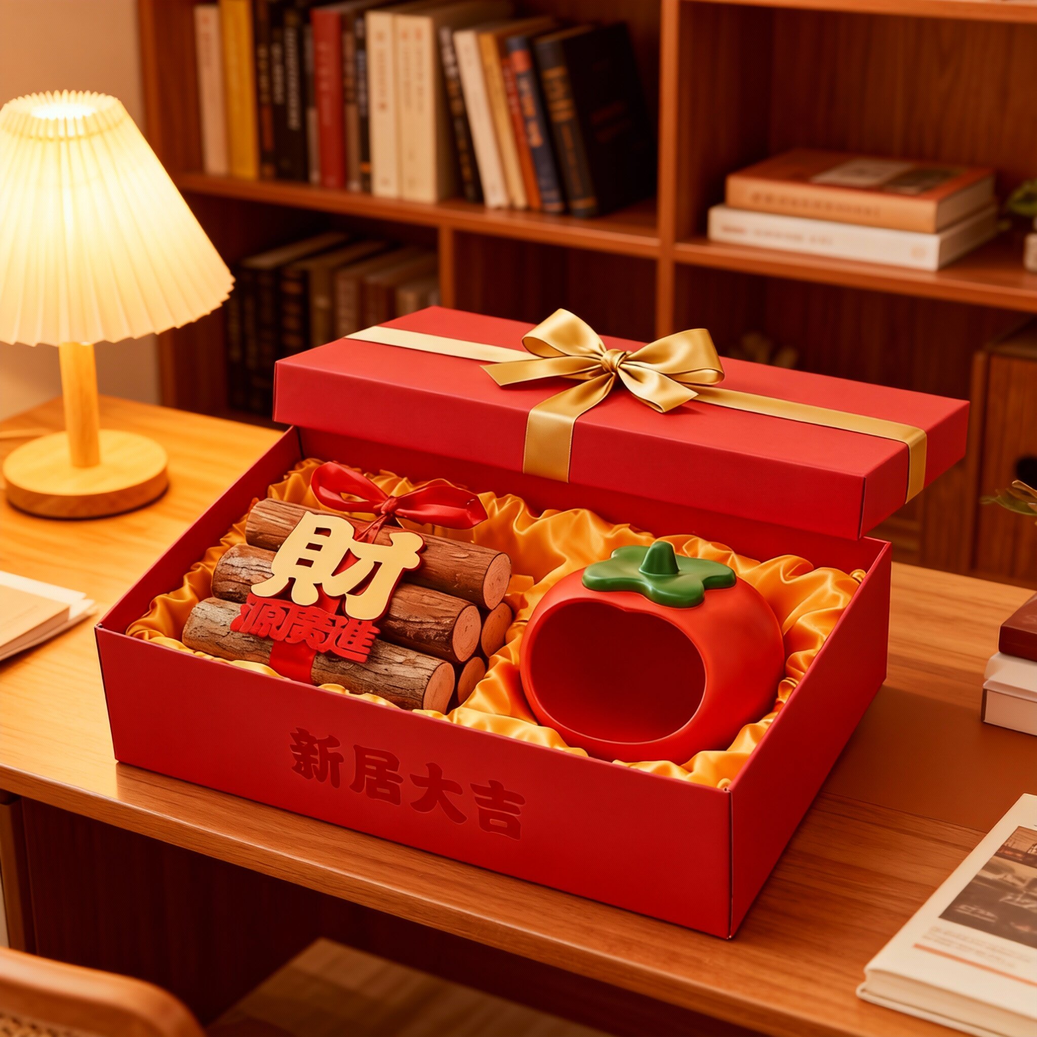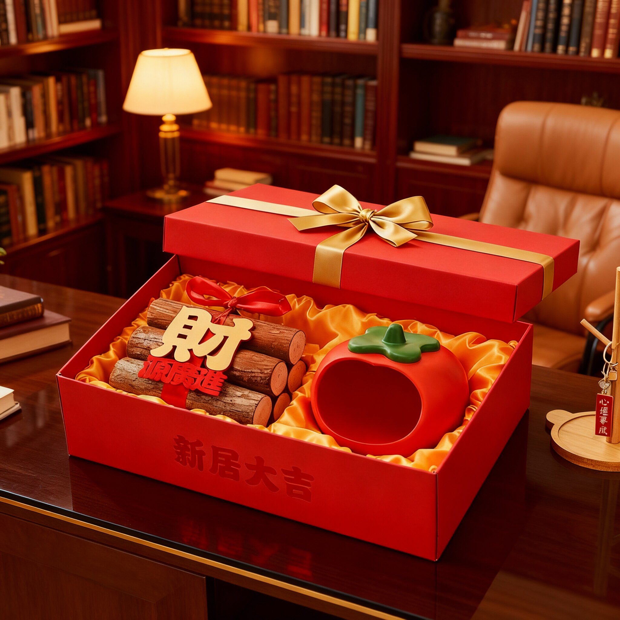招财柿子摆件新居装饰红色礼品盒新婚礼物家居工艺品