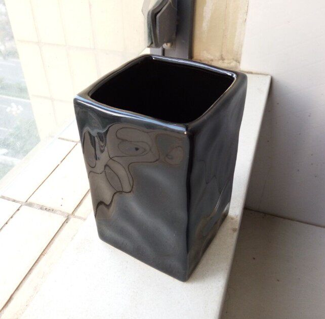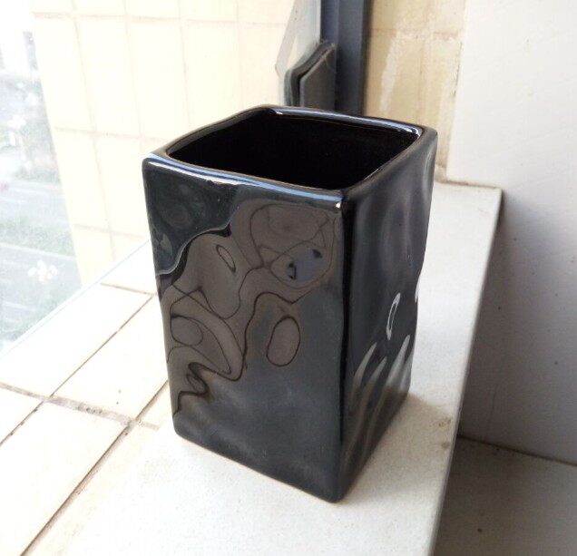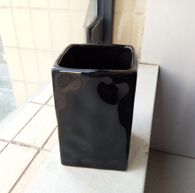 陶瓷瓶黑色色釉瓶 筷子筒竹签筒笔筒 家居摆设收纳筒 四方黑笔筒
