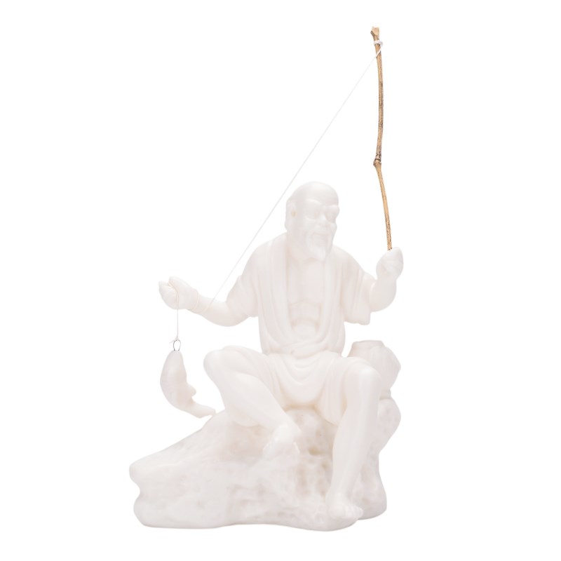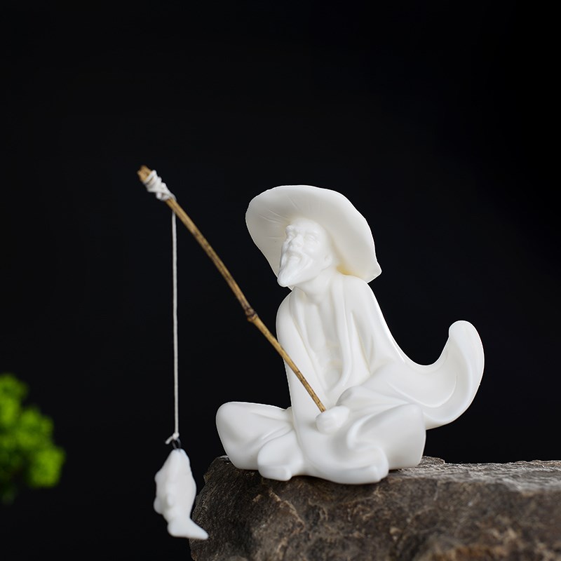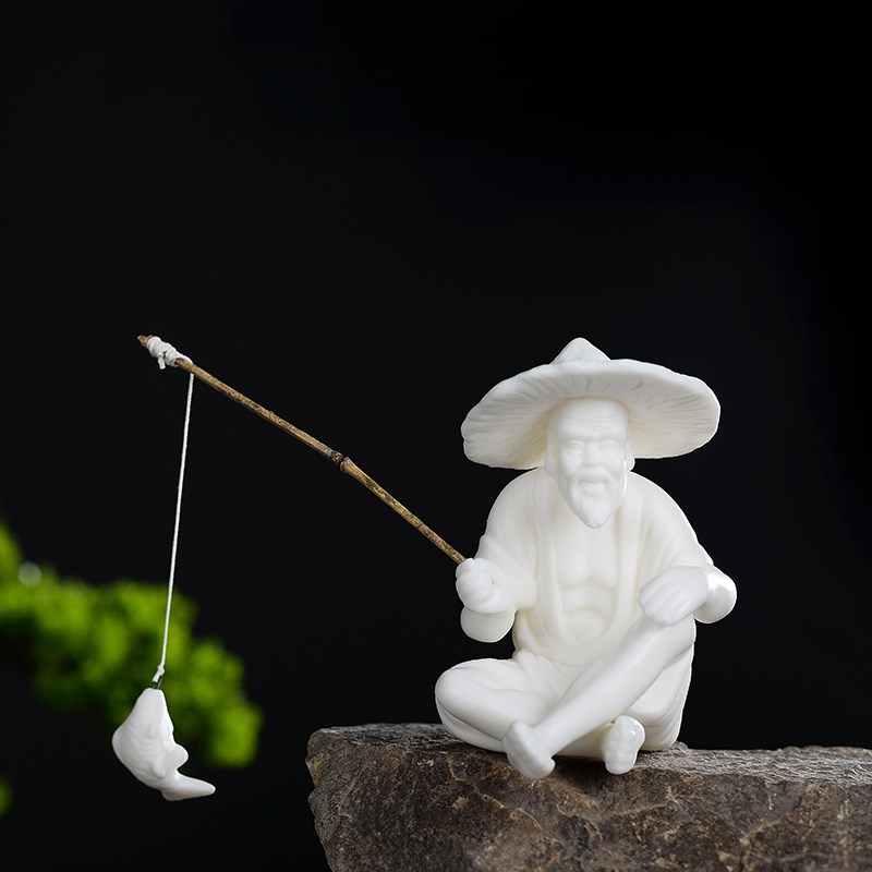 速发创意陶瓷小摆件德化白饰姜太居钓鱼家公装瓷鱼缸造景工艺品摆