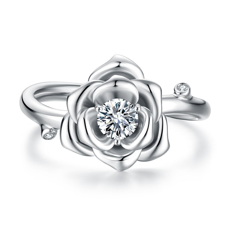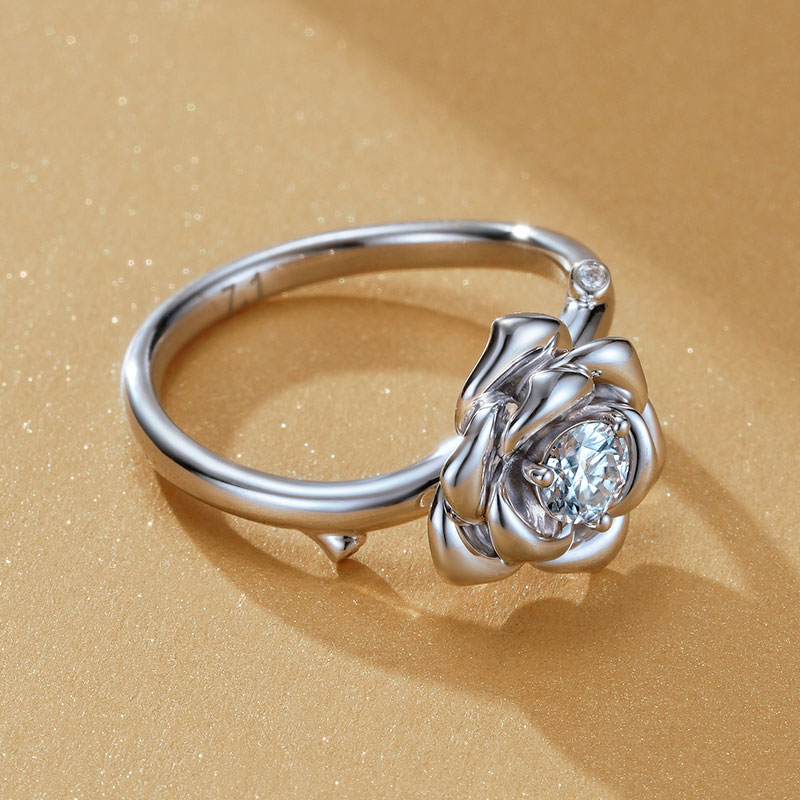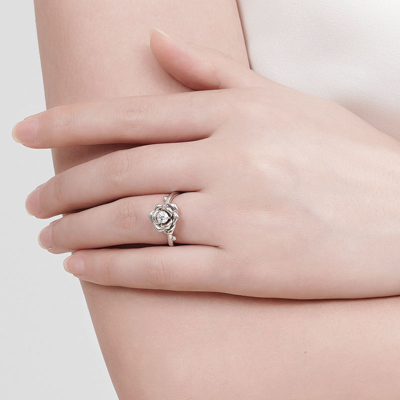 金功良匠小山茶925银女戒莫桑石钻戒轻奢原创设计时尚高级感钻戒