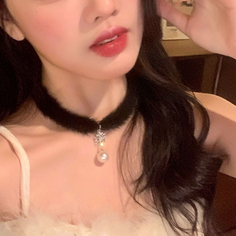 入冬播报 秋冬毛绒白色毛毛项圈女轻奢小众项链圣诞过年颈链配饰