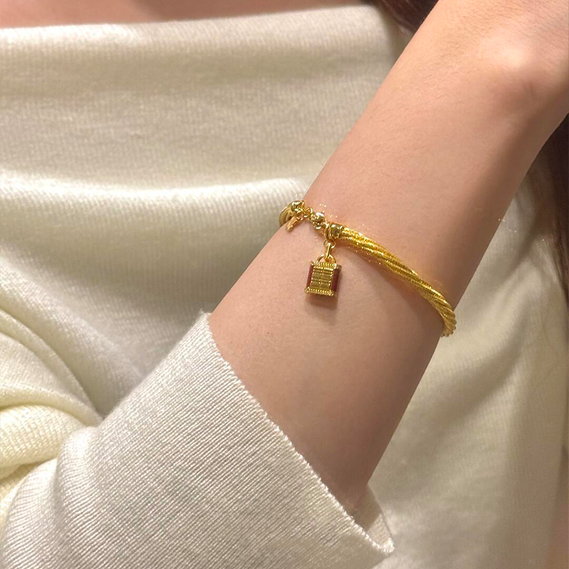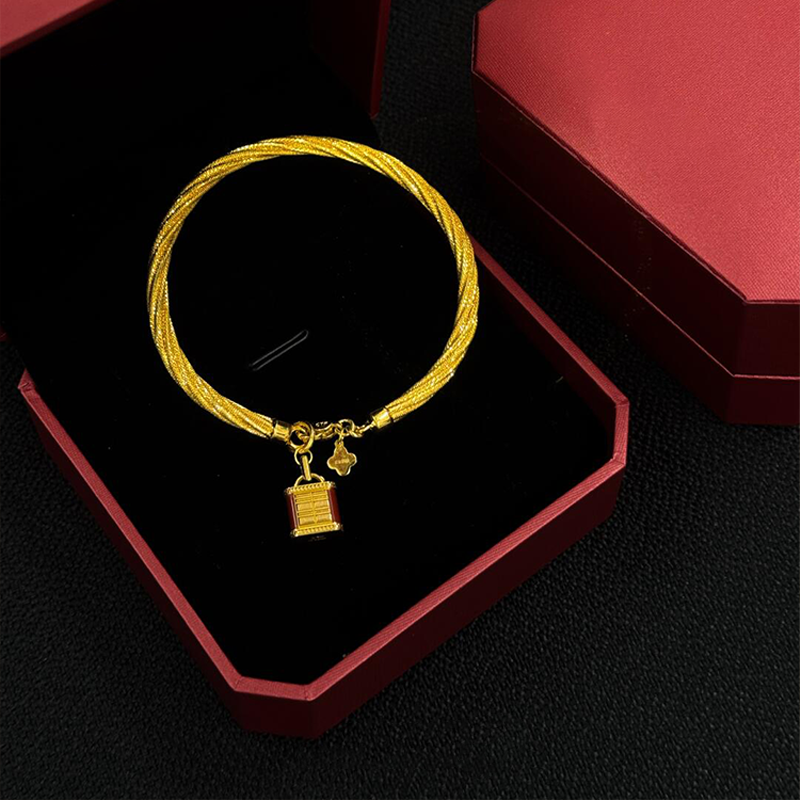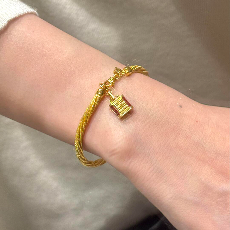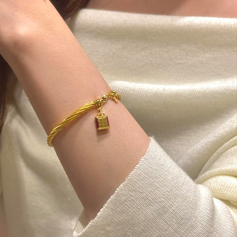 新中式长命锁麻花手镯女款2025新款手链轻奢小众精致叠戴复古手饰