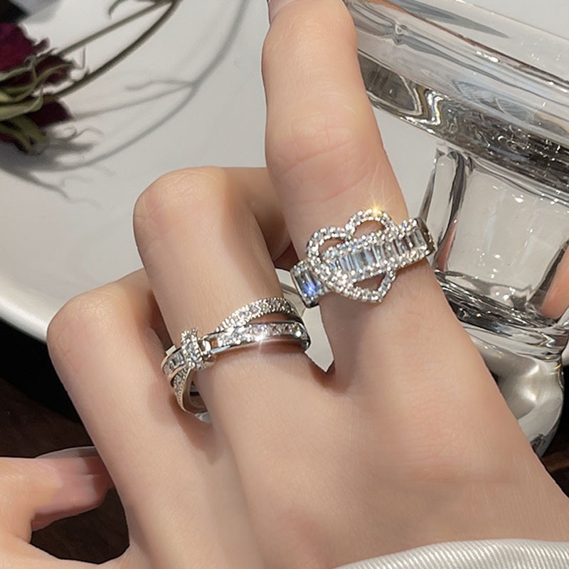 XYDZ爱心高级感交叉锆石戒指女冷淡风小众食指戒轻奢精致开口指环