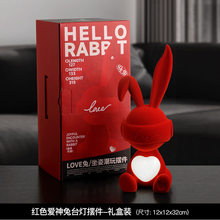 红色订婚兔子摆件装饰台灯乔迁礼品送女朋友新娘人新婚结婚伴手礼