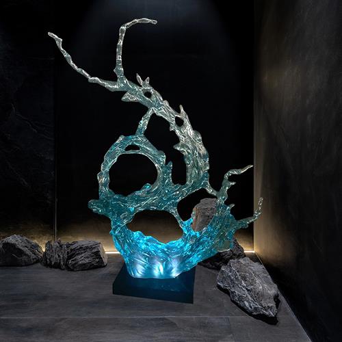 酒店售楼部大厅楼梯间透明树脂浪花摆件别墅样板房雕塑软装艺术品