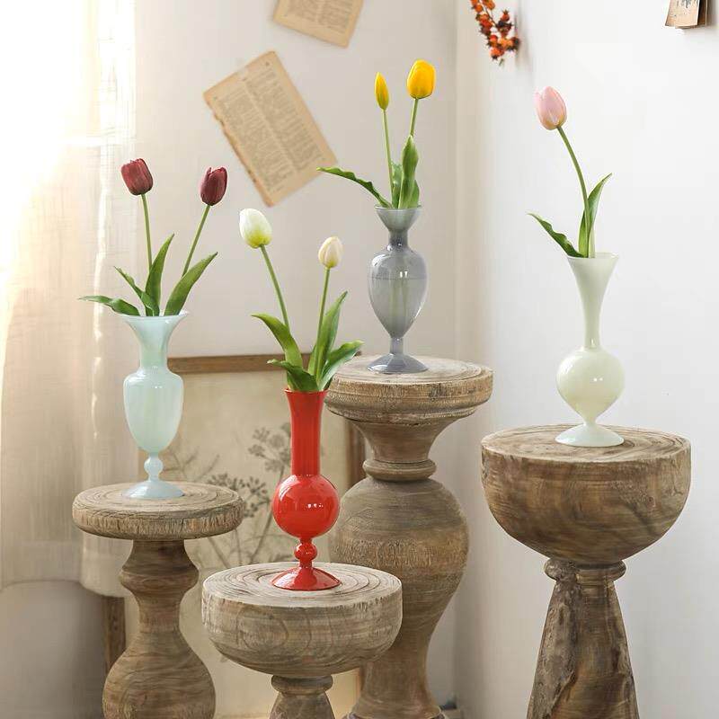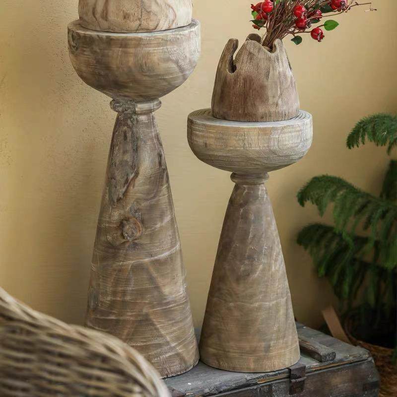 实木罗马柱形花架民宿侘寂风客厅落地大摆件泡桐木阳台落地置物架
