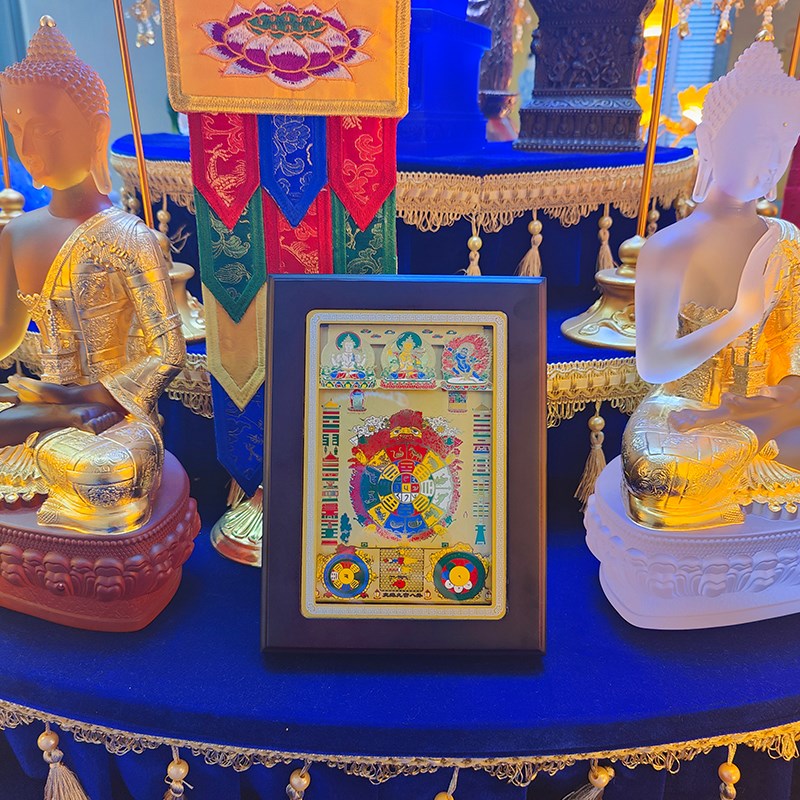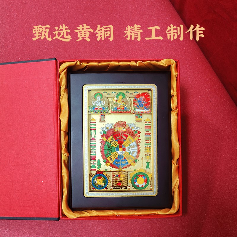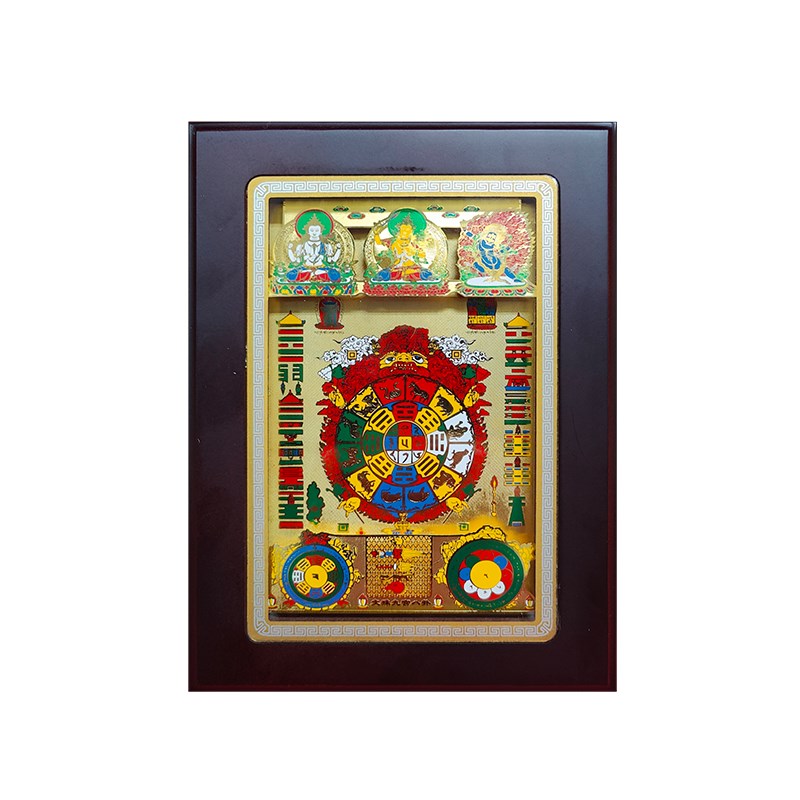 文殊九宫八卦图中式摆件书房手工彩绘铸造实木相框物