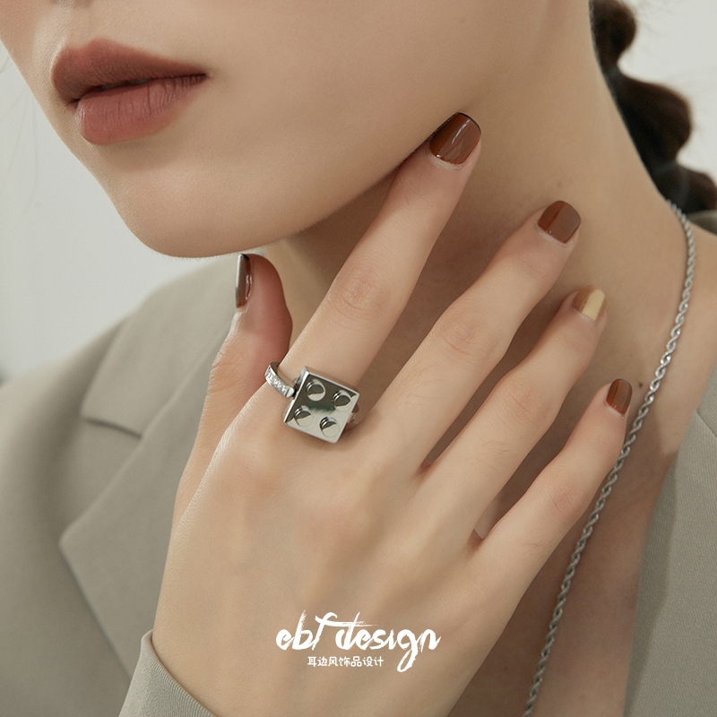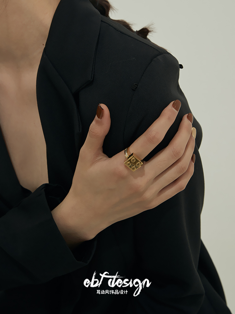 耳边风 原创设计积木镜介系列重工钛钢锆石高级感钛钢几何方块戒
