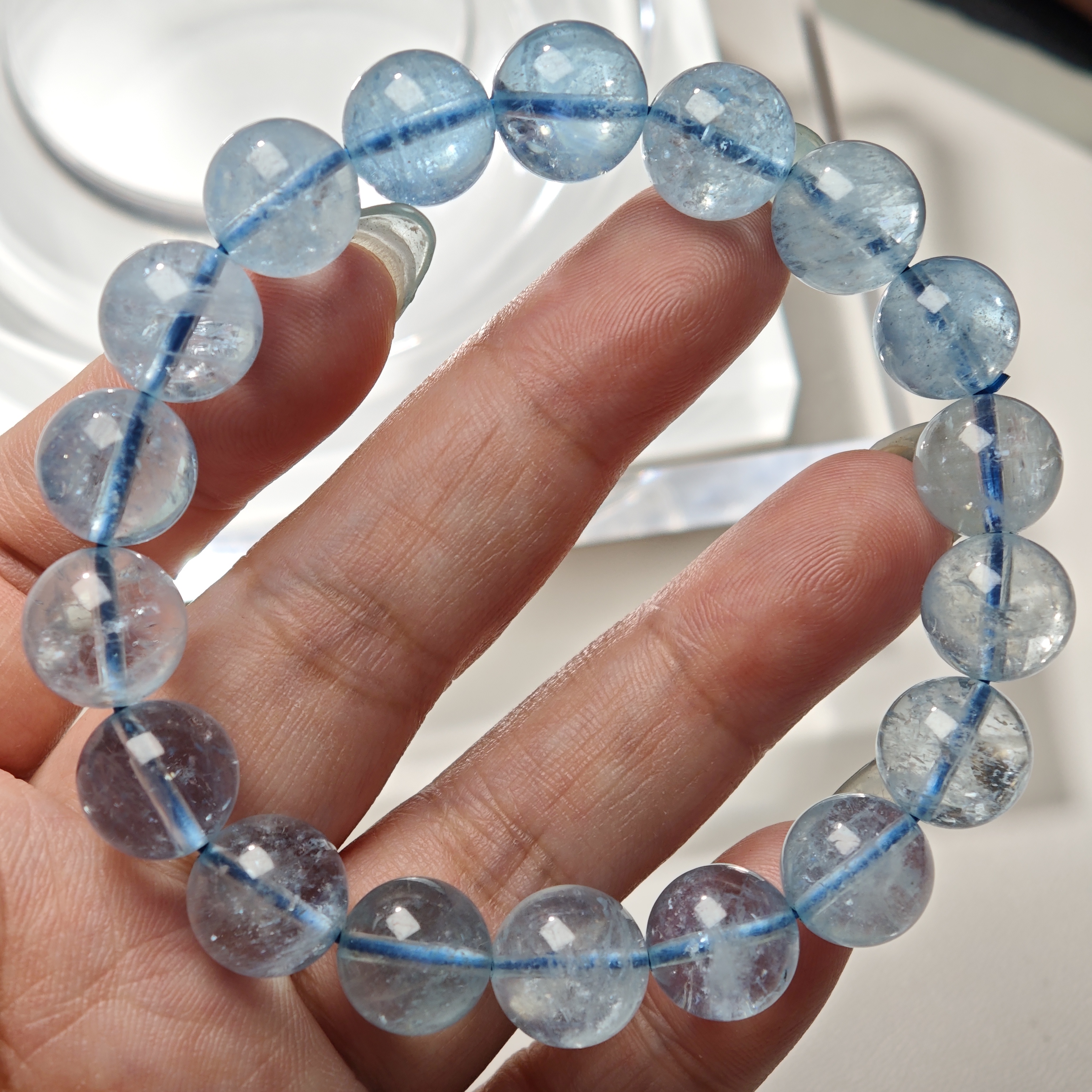 一物一图天然海蓝宝手链鬼蓝冰蓝透体水晶手串夏天女饰带共生矿点