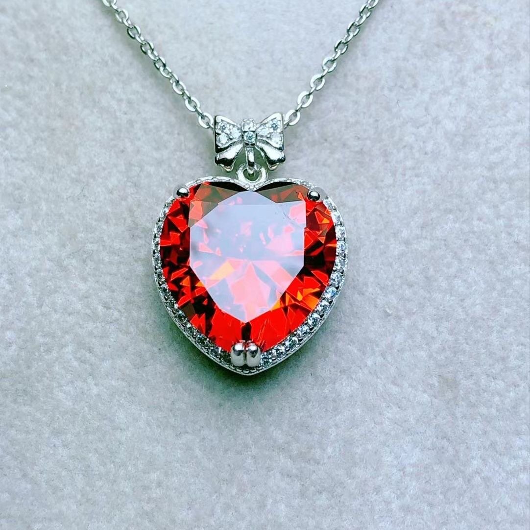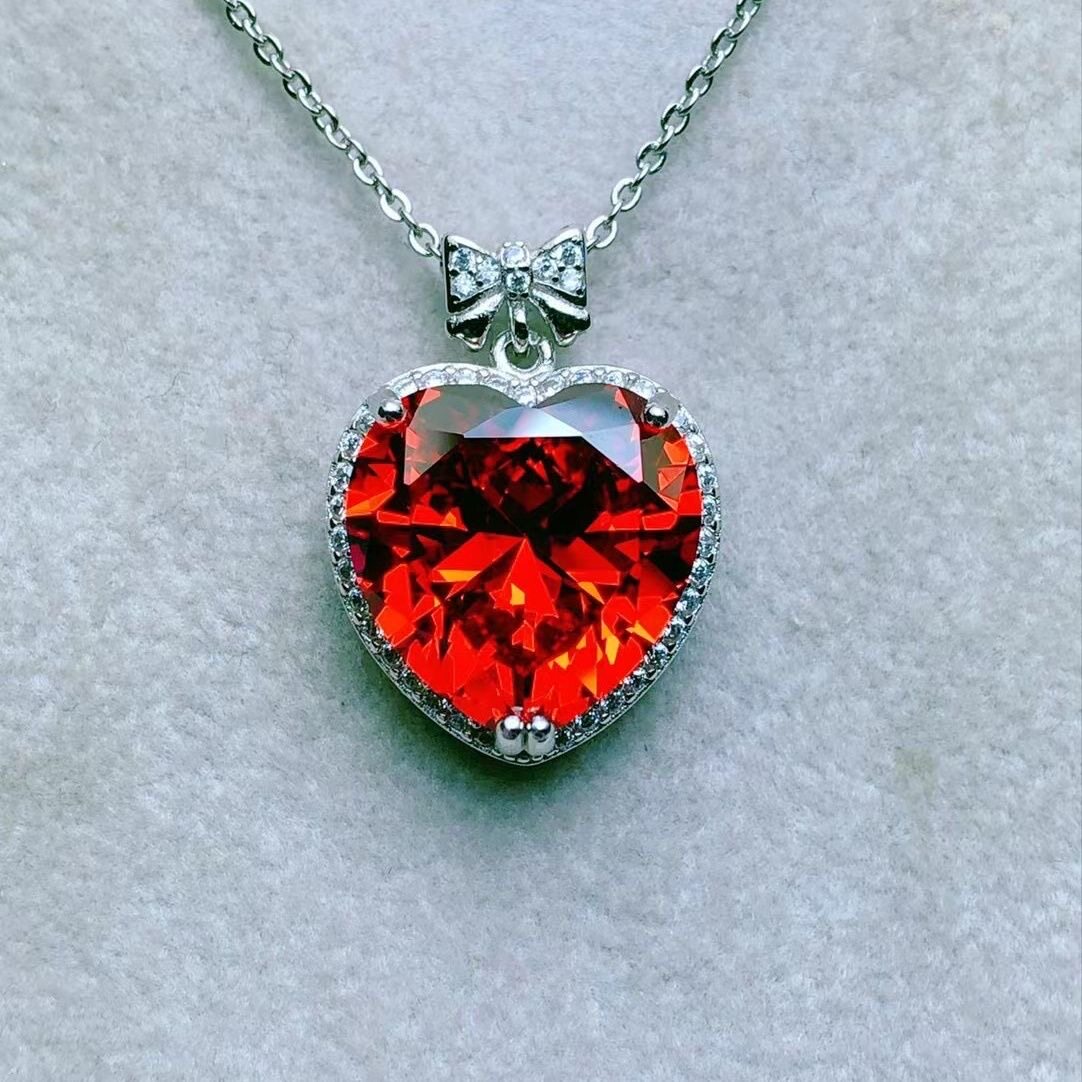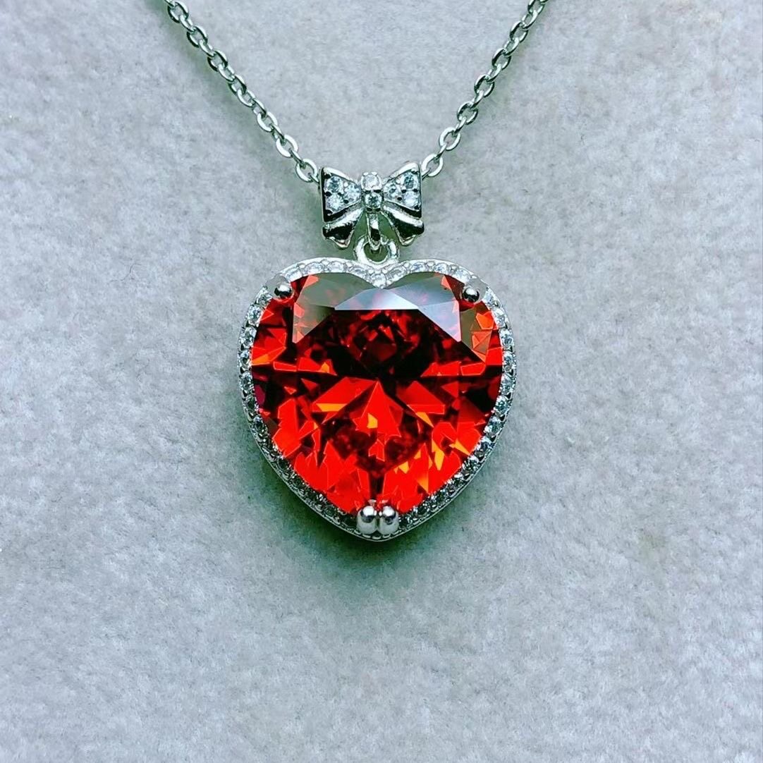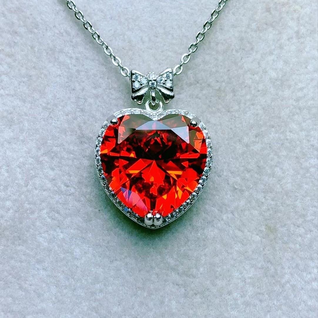 纯天然芬达石榴石吊坠美颜橙色全净体满火彩925银精工镶嵌