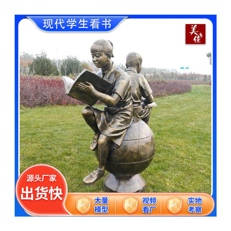 铸铜现代老师学生看书雕塑校园文化师生读书人物雕像毕业赠母校大