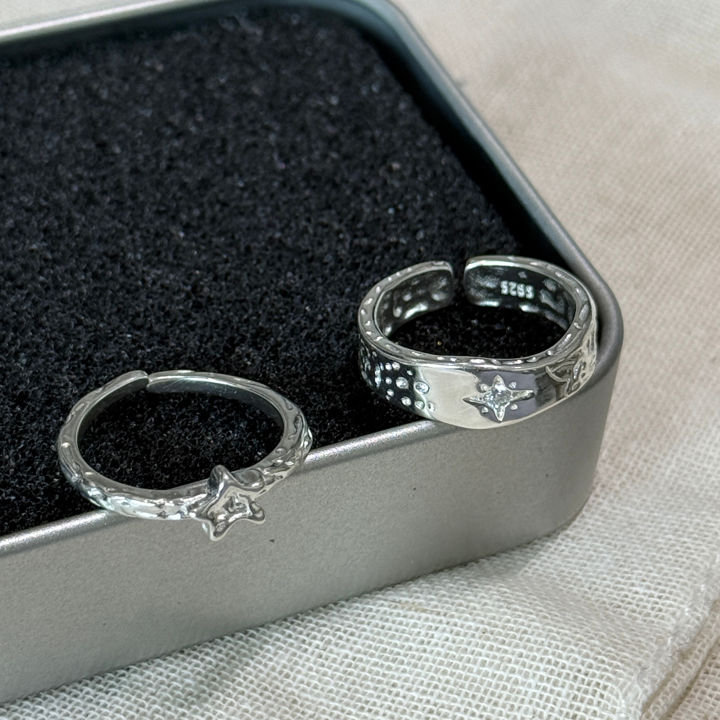 925纯银星河戒指女宽版细款叠戴小众设计ins星星芒星开口戒可调节